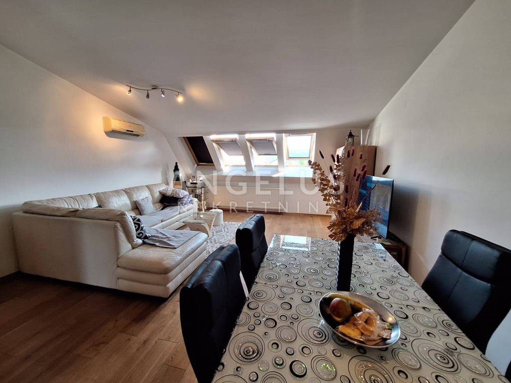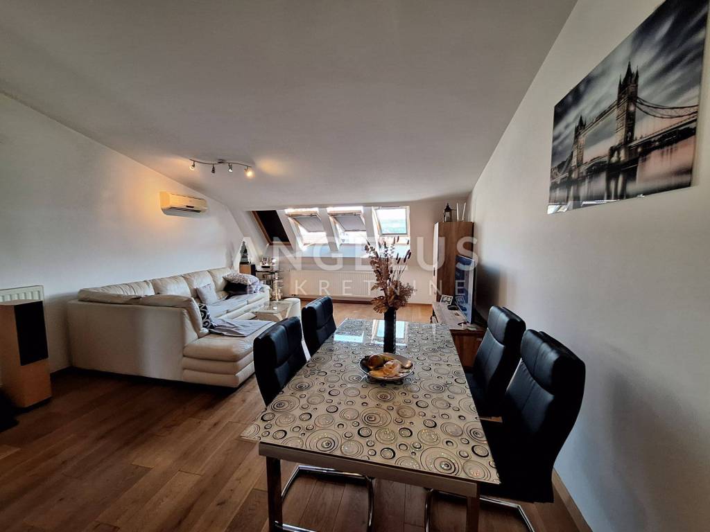 ulaza, ulaznog halla, dnevnog boravka sa blagovaonicom i kuhinjom, predprostora sa garderobom, 3 spavaće sobe, kupaonice sa wc-om i vanjskog parkirnog mjesta u ograđenom dvorištu zgrade pod videonadzorom i ostave. Visina stana je od 2,70m do 3,00 m a najniža točka u stanu je 2,20m. Energetski certifakat A. NKP stana iznosi 88m2 i parkirno mjesto 12,50m2. Stan je ugodan i svijetao sa odličnim veluks prozorima, trostrane orijentacije sa puno dnevnog svijetla. Sva brojila odvojena (struja, plin, voda) Stan je odlično održavan. Dokumentacija uredna, vlasništvo 1/1.