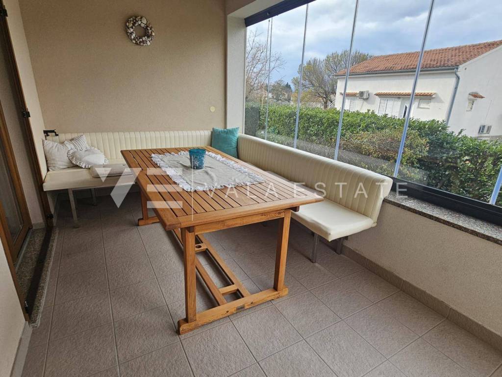 Nekretnine otok Krk, Malinska - na prodaju je komforan prizemni apartman sa lijepom vlastitom okućnicom u neposrednoj blizini mora i plaža. Ukupna stambena površina od 68,94 m2 raspoređena je na ulazni hodnik, dvije spavaće sobe, kupaonu i otvoreni prostor koji objedinjuje kuhinju, blagovaonu i dnevni boravak s izlazom na balkon koji je zatvoren staleklenim stjenama. Iz balkona se izlazi na uređenu ozelenjenu okućnicu veličine 48 m2 na kojoj se nalazi zidani roštilj i manja ljetna kuhinja. Apartmanu pripada spremiše u podrumu i jedno parkirno mjesto na zajedničkom ograđenom dvorištu zgrade. Apartman je kvalitetne gradnje i opreme, održavan, prodaje se namješten te je odmah spreman za useljenje. Nalazi se na odličnoj lokaciji udaljenoj svega stotinjak metara od mora i prekrasnih plaža. Agencija Vala Estate Malinska će Vam omogućiti siguran i transparentan prijenos vlasništva i sve potrebne dokumentacije.