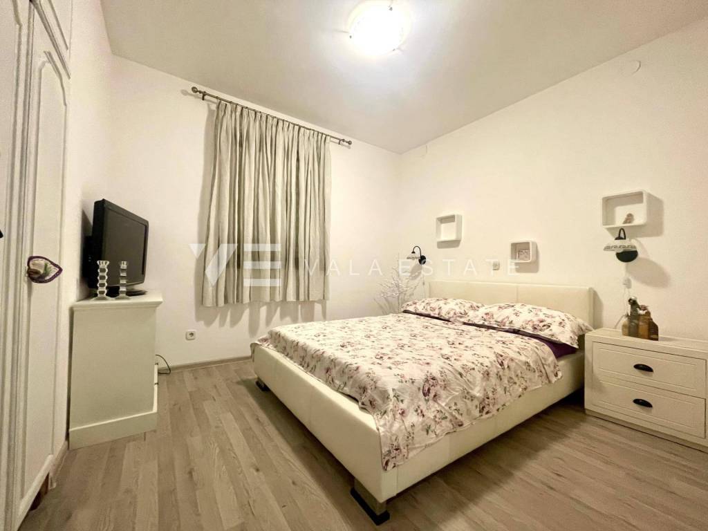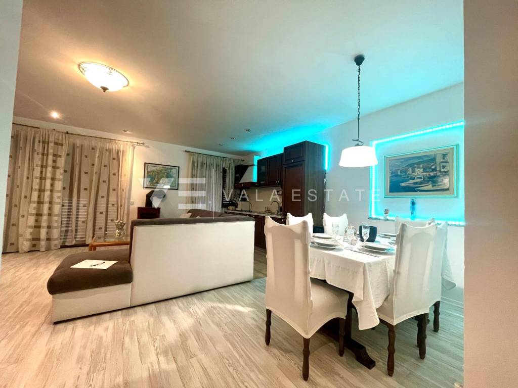 Nekretnine otok Krk, Malinska - na prodaju je dvosobni apartman ukupne stambene površine 71 m2 smješten u prizemlju više obiteljske kuće. Sastoji se od ulaznog prostora, kupaone, dvije spavaće sobe, kuhinje, blagovaone i dnevnog boravka s izlazom na natkrivenu terasu i ozelenjenu okućnicu od 96 m2. Apartman je namješten i opremljen, klimatiziran, ima drvenu stolariju, urednu dokumentaciju te je odmah spreman za useljenje. Pripada mu jedno parkirno mjesto na zajedničkom dvorištu kuće. Nalazi se na mirnoj lokaciji u blizini mora i centra sa svim sadržajima. Odlična je prilika je za vlastito korištenje ili za turistički najam.