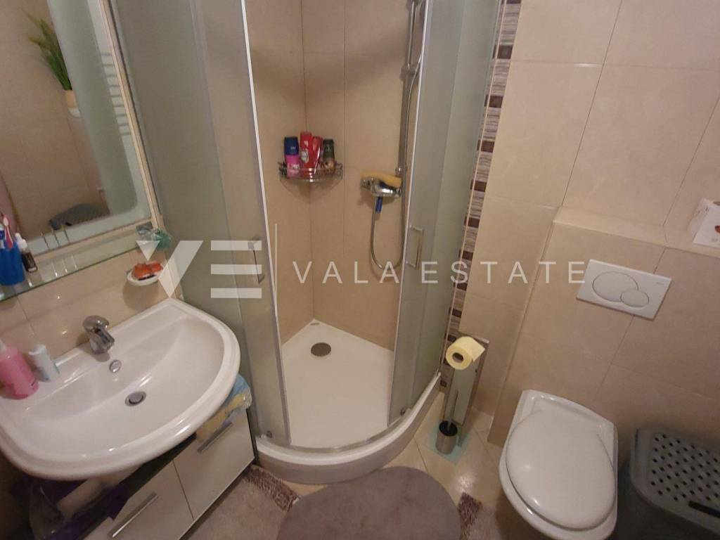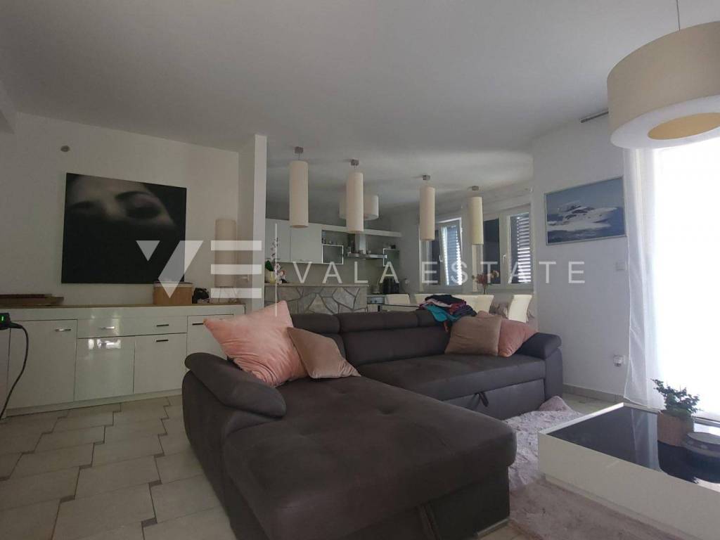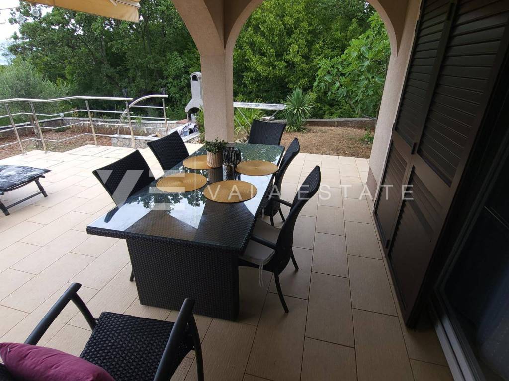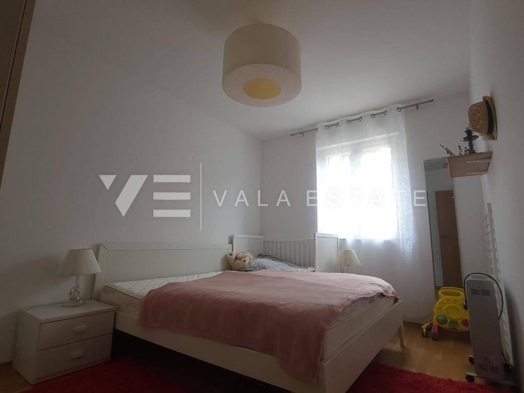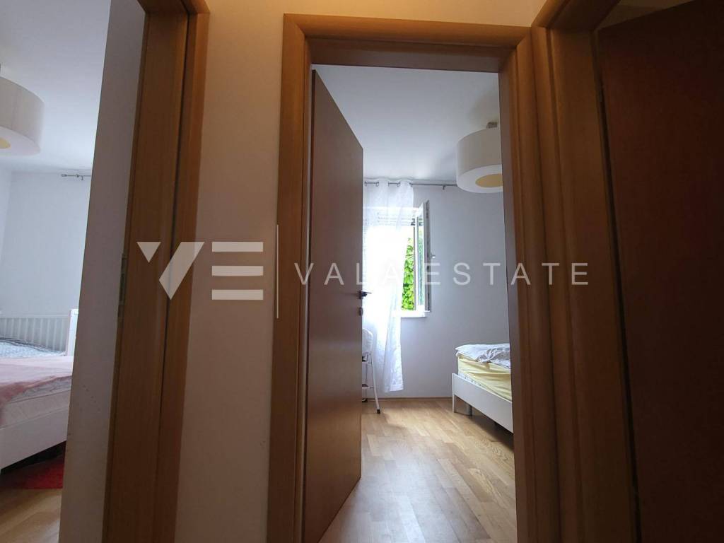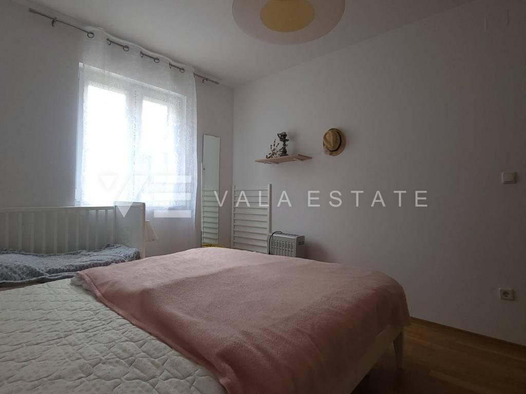 Nekretnine otok Krk, okolica grada Krka - na prodaju je prostrani dvosoban apartman u prizemlju više obiteljske kuće sa ukupno četiri stambene jedinice, smještene u blizini mora i lijepih plaža. Sastoji se od ulaznog hodnika, dvije spavaće sobe, ostave, kupaone i dnevnog boravka sa kuhinjom i blagovaonom sa izlazom na terasu i veliku uređenu okućnicu sa pogledom na more. Apartmanu pripada manja garaža i jedno parkirno mjesto na zajedničkom dvorištu kuće. Prodaje se kompletno namješten i odmah je spreman za useljenje. Kvalitetna gradnja i oprema, uredna dokumentacija, etažno vlasništvo. Nalazi se na mirnoj lokaciji na rubu zelene zone, udaljenoj svega 600 m od prekrasnih plaža.