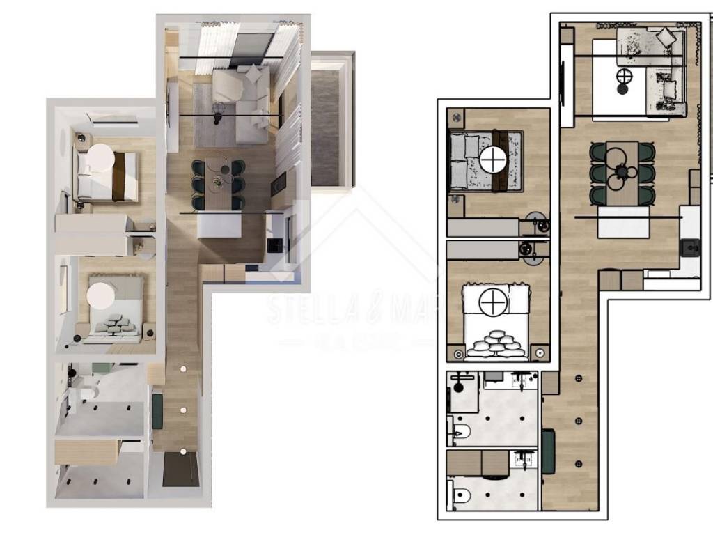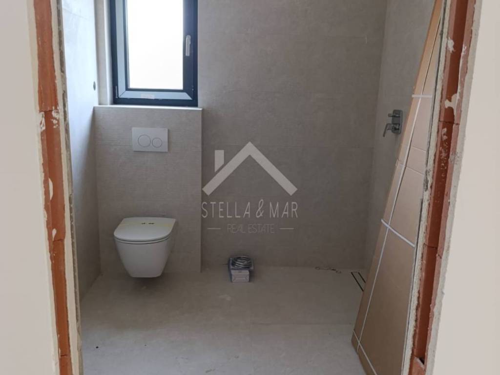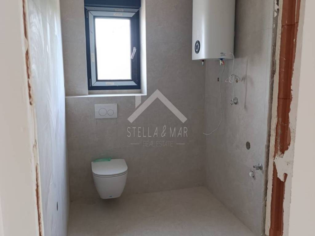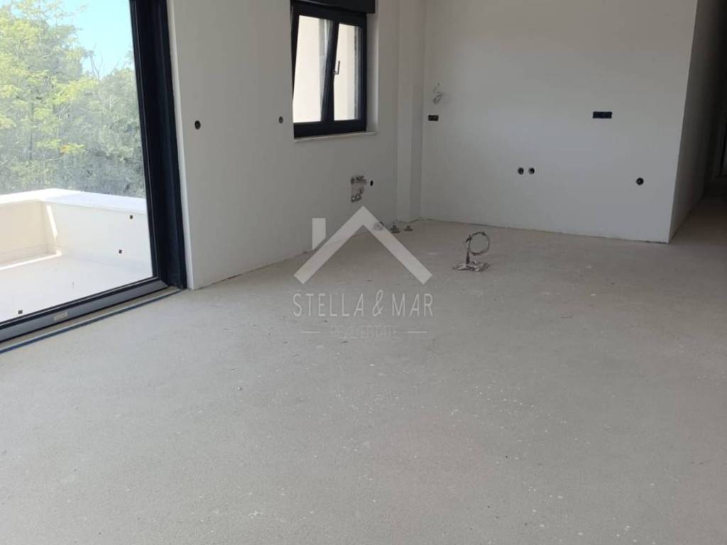 Apartman je površine 77,5 , raspolaže sa hodnikom, prostranim dnevnim boravkom sa kuhinjom i blagovaonom, dvije spavaće sobe, kupaonom, WC-om i natkrivenom terasom.