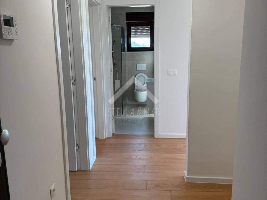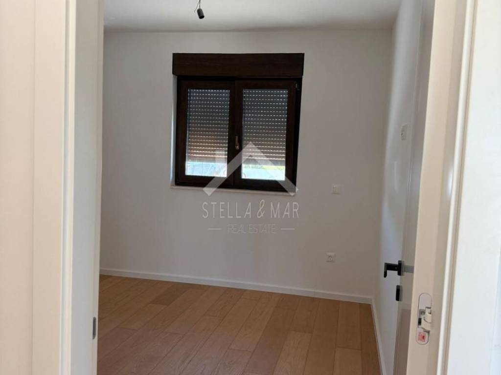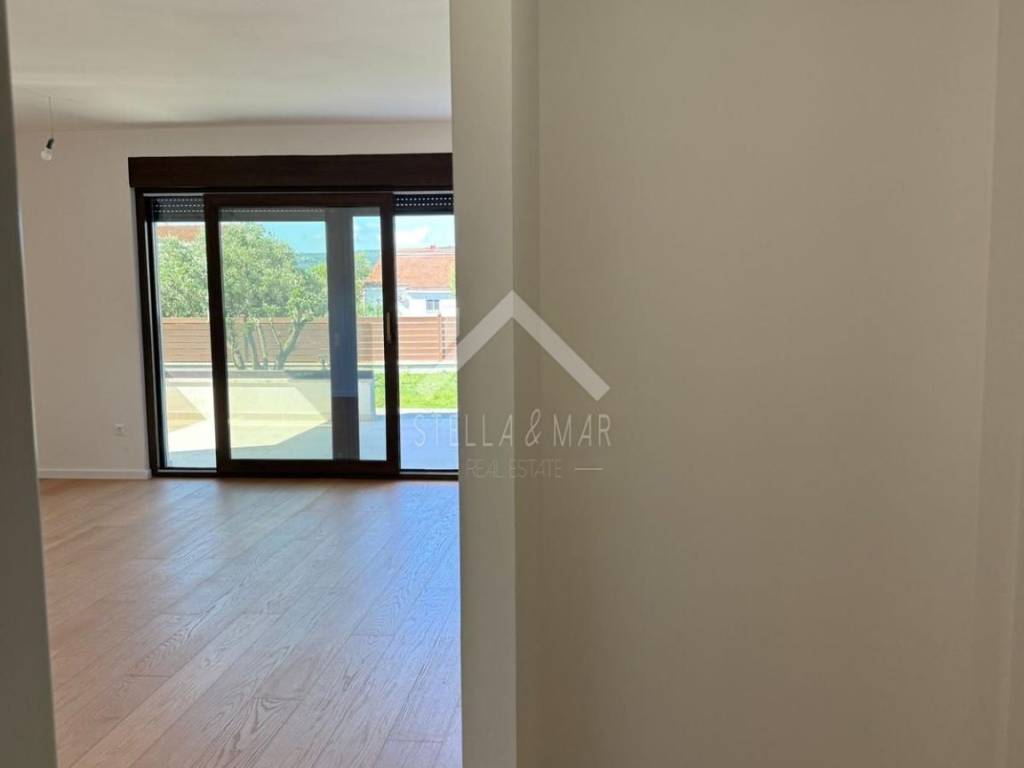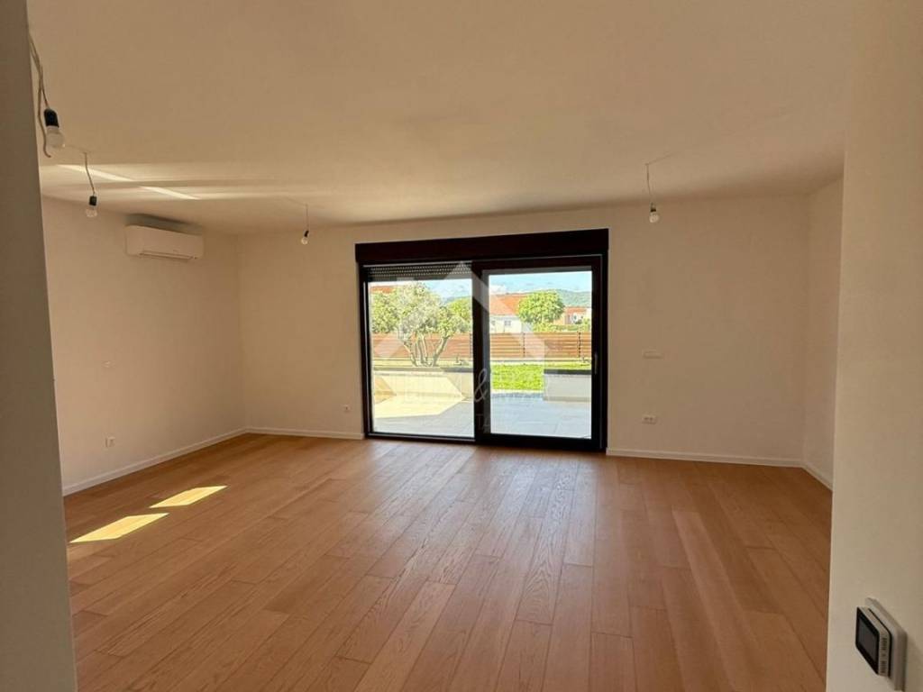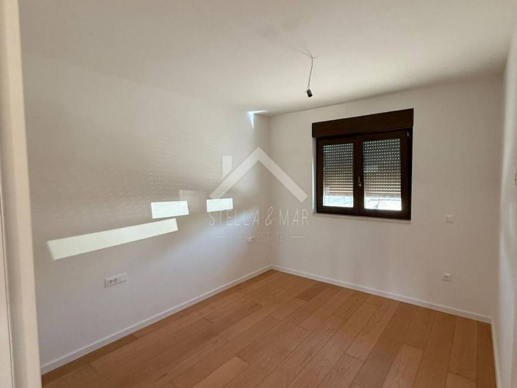 Stan se nalazi u prizemlju zgrade i ima ukupnu stambenu površinu 90,65 m2. Stan ima dvije spavaće sobe, površine 12 m2 i 11,28 m2, kuhinja, dnevni i blagovaona 31,43, hodnik 5,58 m2, kupaonica 4, 75 m2, velika terasa 19,14 m2 i pripadajući dio vrta od 116 m2, te dva parkirna mjesta. Zgrada je građena od visoko kvalitetnih materijala. Na podovima hrastovi parket. Podno grijanje, daikin klime. Stan ima pogled na more.