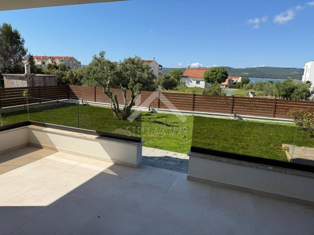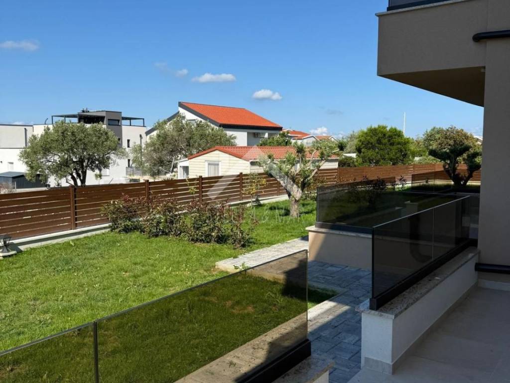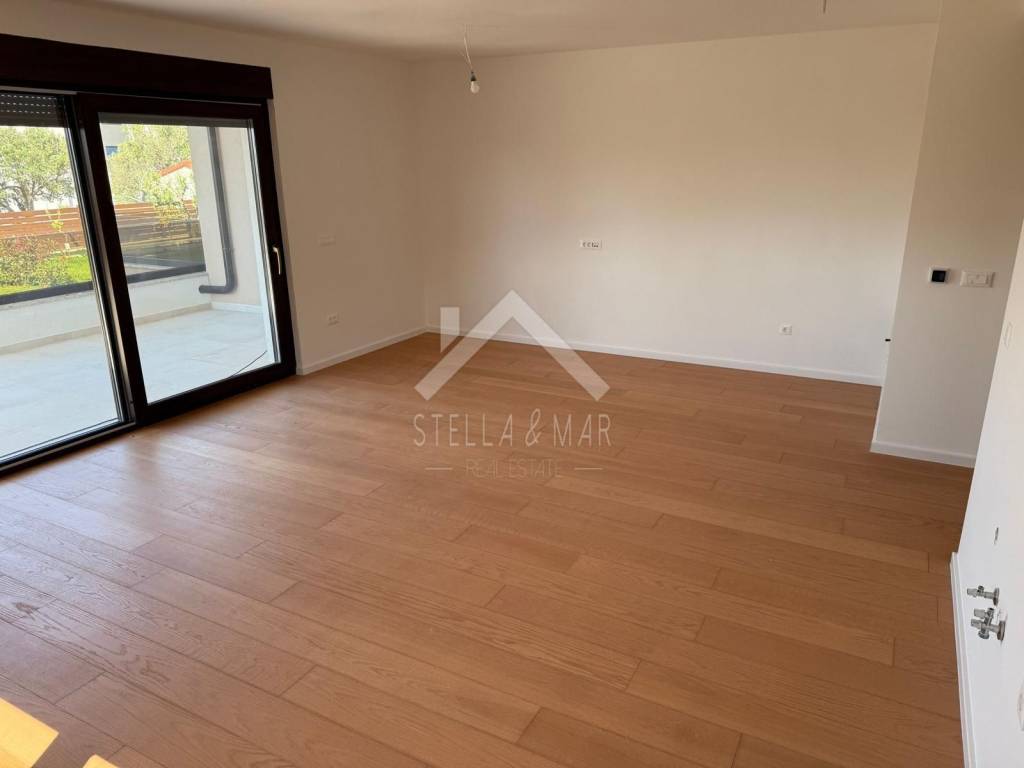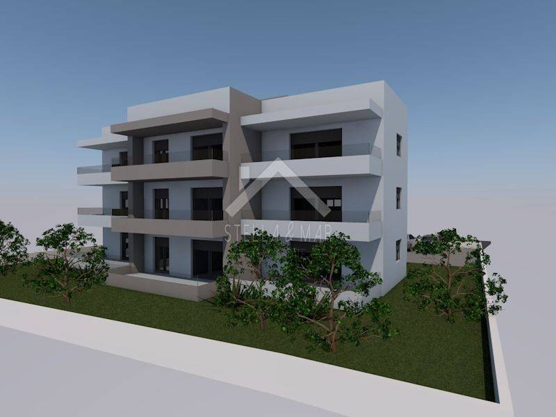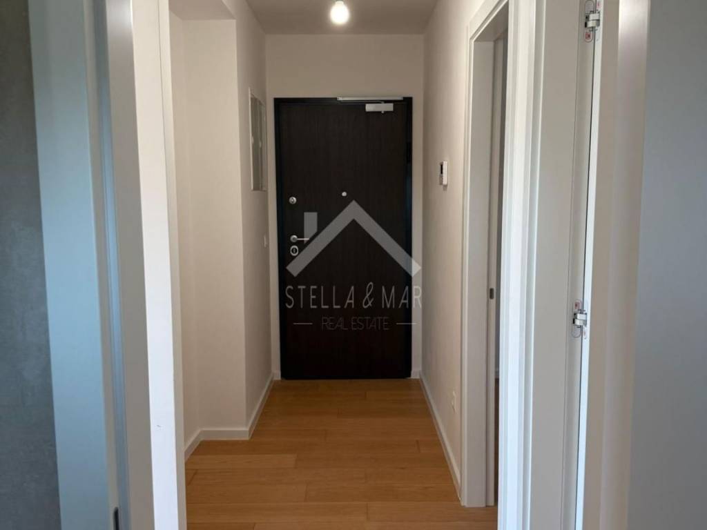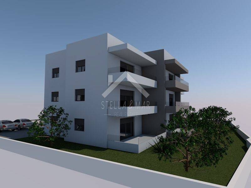 Stan se nalazi u prizemlju zgrade i ima ukupnu stambenu površinu 90,65 m2. Stan ima dvije spavaće sobe, površine 12 m2 i 11,28 m2, kuhinja, dnevni i blagovaona 31,43, hodnik 5,58 m2, kupaonica 4, 75 m2, velika terasa 19,14 m2 i pripadajući dio vrta od 116 m2, te dva parkirna mjesta. Zgrada je građena od visoko kvalitetnih materijala. Na podovima hrastovi parket. Podno grijanje, daikin klime. Stan ima pogled na more.