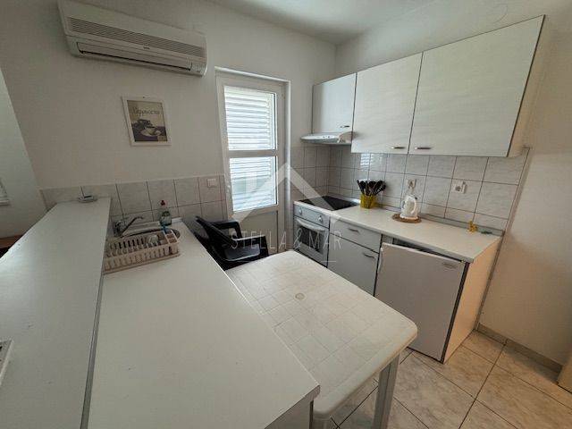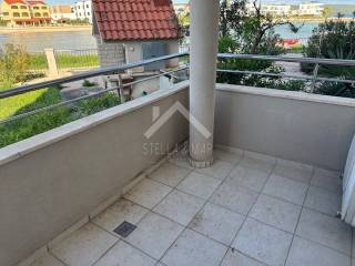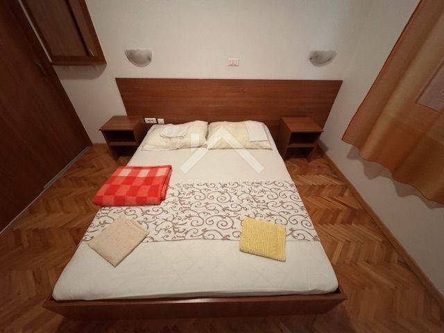Apartman ima ukupnu stambenu površinu od 57.75 m2, od toga dvije spavaće sobe, dnevni boravak, blagovaonicu, kuhinju, hodnik i wc, te prekrasnu terasu sa pogledom direktno na more. Stan se prodaje sa kompletnim namještajem. Nalazi se u prizemlju zgrade koja ima sveukupno 3 kata, sa 14 apartmana. Zgrada se nalazi uz prekrasnu plažu. Apartman ima klima uređaj, te dimnjak s mogućnošću postavljanja peći na drva. Stanu pripada jedno parkirno mjesto i ostava. Vlasnička i ostala dokumentacija uredna.