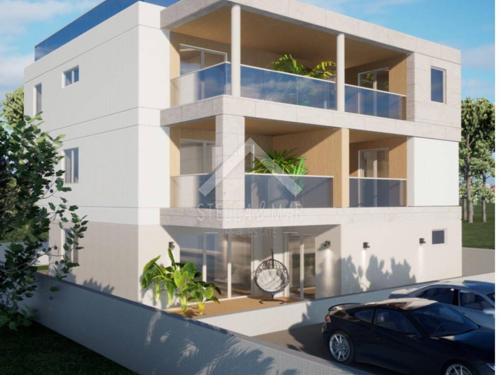 Prodaje se penthouse s pogledom na more u izgradnji u strogom centru otoka Vira na jednoj od najatraktivnijih lokacija, u neposrednoj blizini glavne plaže Jadro.