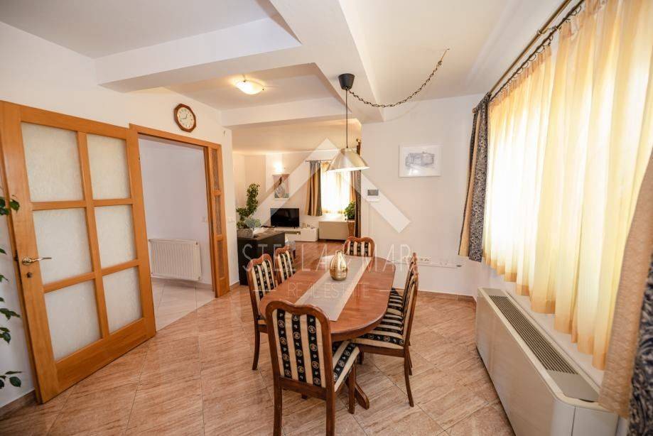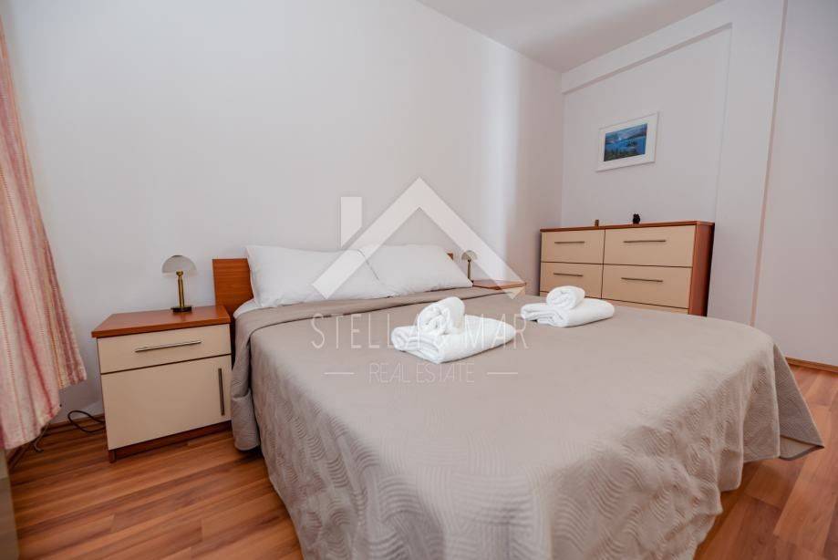 U prizemlju se nalazi 3-soban komforni stan, koji raspolaže sa dnevnim boravkom, kuhinjom, blagovaonom, dvije spavaće sobe, dva balkona i prostranom kupaonom .