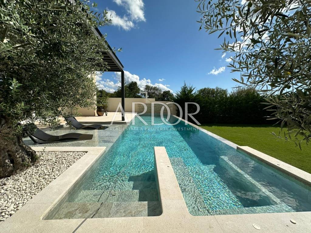 Kanfanar moderna vila površine 276 m smještena je na okućnici od 1020 m s uredno održavanim travnjakom koji pruža brojne mogućnosti od uređenja teniskog ili mini golf terena, dječjeg igrališta ili jednostavno uživanja u prostranoj zelenoj površini.