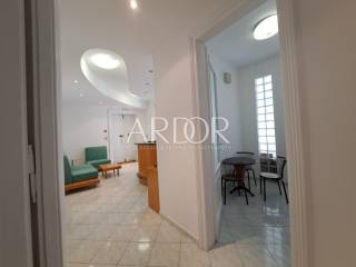 VRHUNSKA INVESTICIJA U SRCU RIJEKE! Ovaj je gospodarski stan od 133 m2 u potpunosti preuređen, te ima novu stolariju, plutajuće podove, rasvjetu, maštovito spuštene stropove, renoviranu kupaonu, i sve što vam je potrebno da vrlo brzo uđete u svoju nekretninu! Razmještaj je takav da se može iskoristiti povezanost između prostorija, ali se, isto tako, sve može, samo zatvaranjem vrata sve odvojiti, te bi svaka soba, a ima ih 4, bila odvojena. Ovisno o željama kupca, ova se površina može iskoristiti kao jedna stambena jedinica, ali se, isto tako, na ovu površinu može osmisliti dvije, pa čak i tri stana. Ukoliko tražite poziciju u gradu gdje vam auto, jednom parkiran, više neće trebati, onda je to ova predivna nekretnina sa puno mogućnosti.