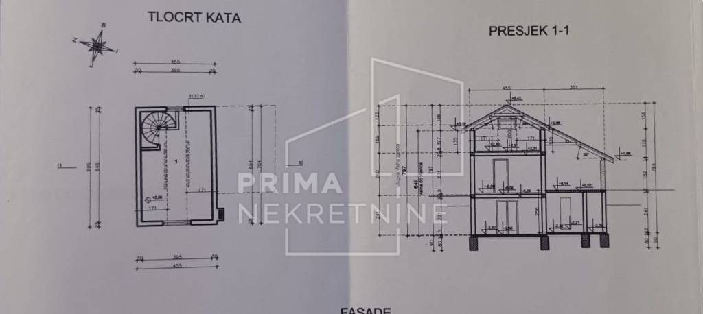 - prizemlja na kojem se nalazi: hodnik, kupaonica, dnevni boravak, natkrivena terasa i nenatkrivena terasa
