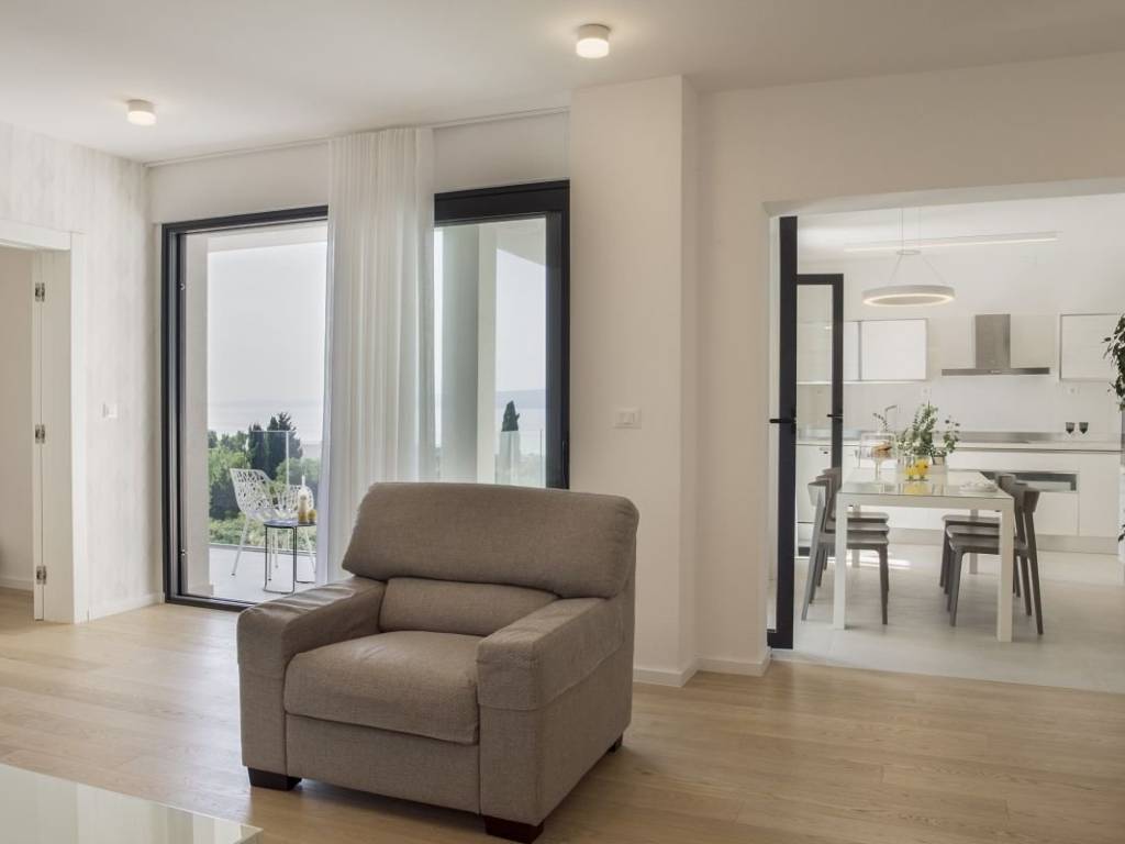 Iznajmljuje se dvosoban, moderno opremljen stan s panoramskim pogledom na more. Stan se prostire na 80 m2 stambenog prostora, potpuno je namješten i spreman za useljenje. Sastoji se od dnevnog boravka s izlazom na terasu, kuhinje s blagovaonicom, WC-a, dvije spavaće sobe, dvije kupaonice i garderobe. Uz stan pripada terasa od 20 m2 te privatno parkirno mjesto. Stan je dostupan za kratkoročni najam u periodu od 17.11.2025. do 30.04.2026. godine. Kućni ljubimci nisu dopušteni. Cijena je bez uključenih režija. Najmoprimac plaća proviziju u visini jedne mjesečne najamnine uvećane za propisani PDV. * S obzirom na promjenjivost i dinamiku iznajmljivanja, oglas je informativnog karaktera te ne mora nužno značiti da je ovaj stan dostupan za najam.