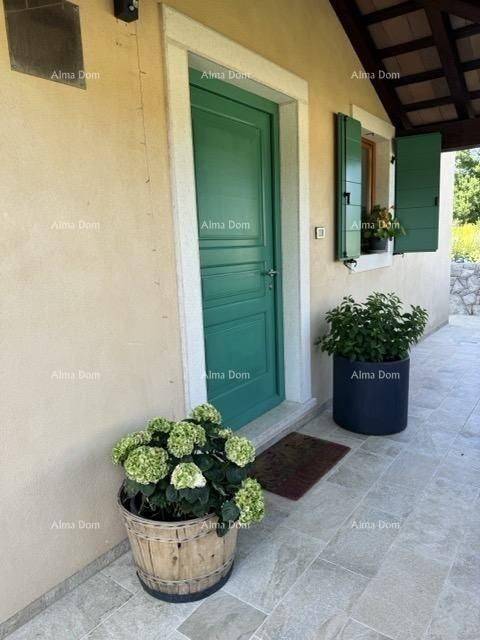 Prodaje se stilizirana kamena kuća u mediteranskom stilu na mirnoj lokaciji, s očaravajućim pogledom na Jadransko more. Kuća je potpuno namještena, ograđena i nudi potpunu privatnost.Sastoji se od otvorenog dnevnog prostora s kuhinjom i blagovaonicom, 3 spavaće sobe s balkonima i pogledom na more, 2 kupaonice, gostinjskog WC-a i podruma. Velike staklene stijene povezuju interijer s uređenim vrtom i bazenom, uz natkrivenu terasu za roštilj i opuštanje.Posebnost nekretnine je velika bočna parcela pogodna za dodatne sadržaje (voćnjak, igralište, vrt). Kuća ima 70 m³ cisternu, sustav osmoze u kuhinji i pruža održivu, samostalnu opskrbu vodom. Mirna lokacija i blizina plaža. Pogled na more. Bazen i uređen vrt.Za dodatne informacije, molimo kontaktirajte: Azra:+385 91 611 5706+385 98 420 885azra@almadominvest.com
