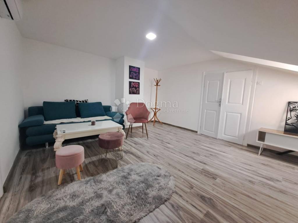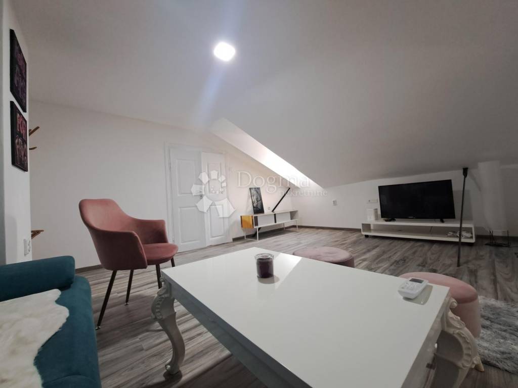Dugoročno se iznajmljuje potpuno novouređen, svijetao stan u samom centru Rijeke, smješten u visokom potkrovlju zgrade.