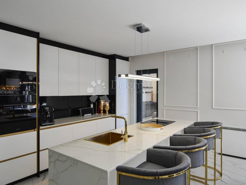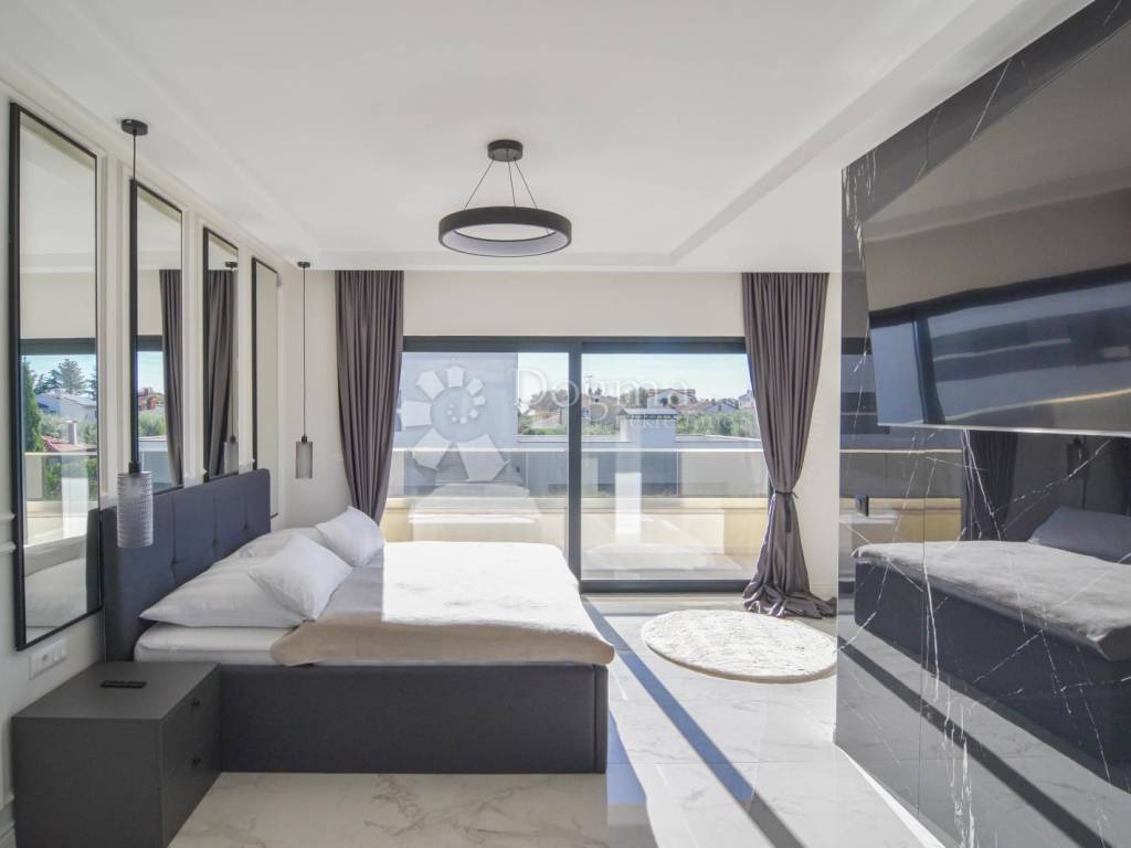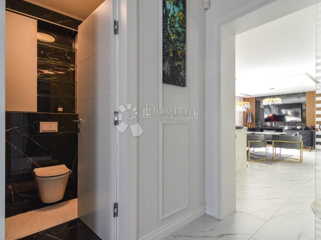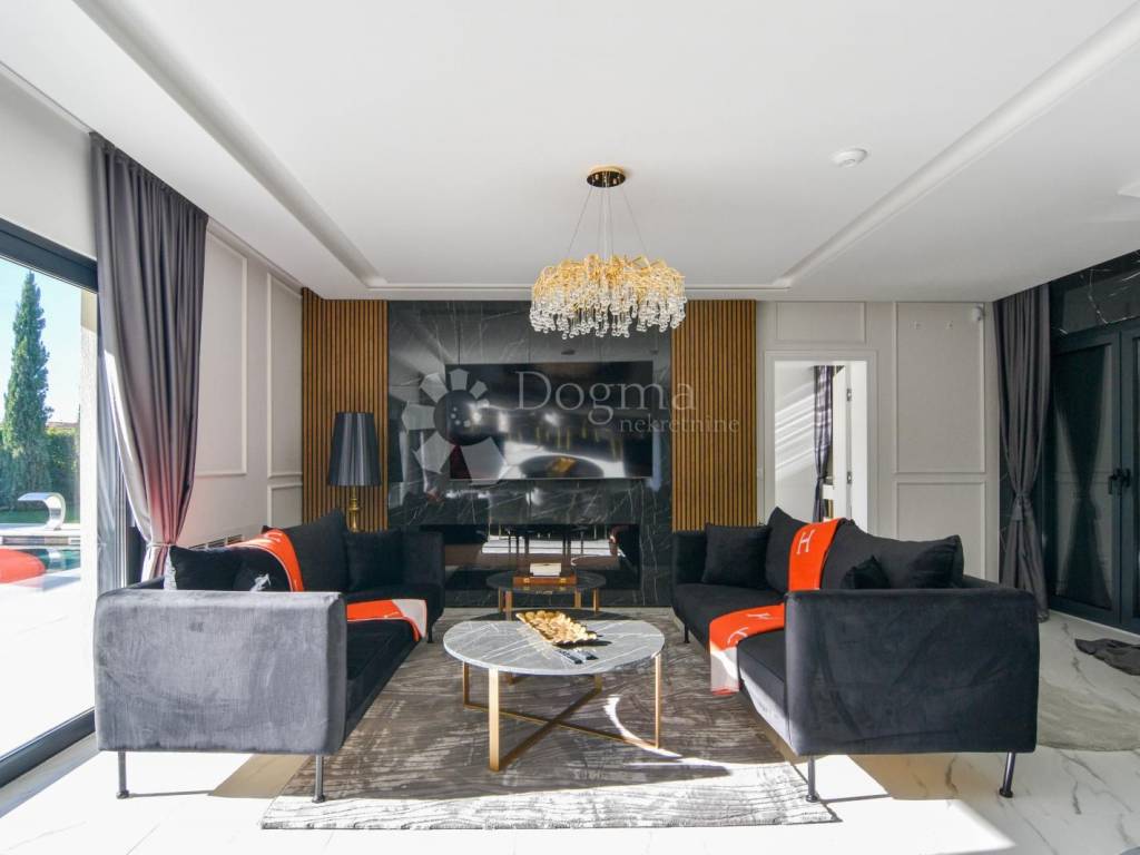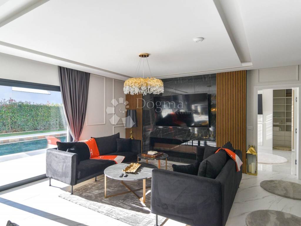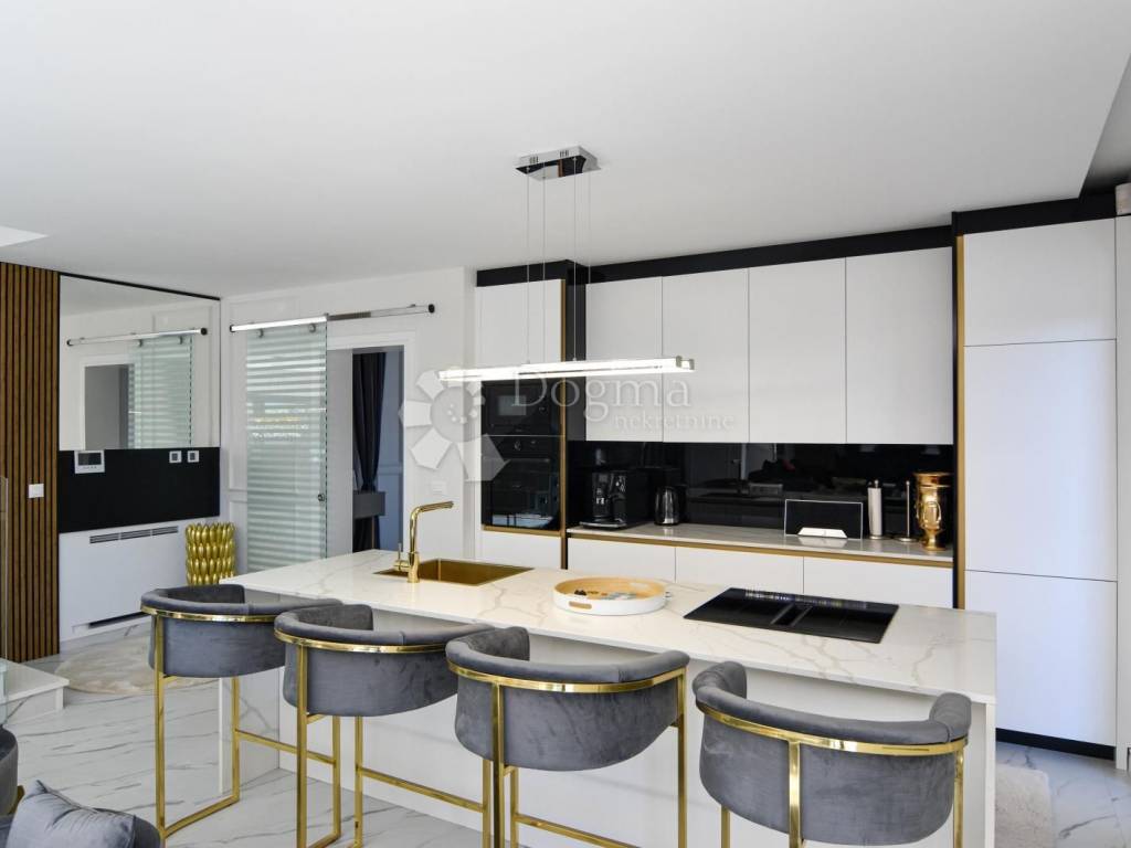 Opremljena je podnim grijanjem putem dizalice topline te fan-coil sustavom za hlađenje, što osigurava maksimalnu udobnost tijekom cijele godine. Cijela nekretnina izgrađena je od najkvalitetnijih materijala i opremljena modernim namještajem, čime se postiže vrhunski luksuzni dojam.