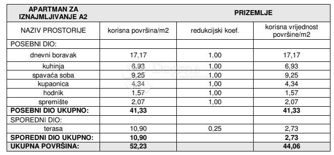 Aprtman Ap2 sastoji se od dnevnog boravka, kuhinje i blagovaonice u jedinstvenom otvorenom prostoru, jedne spavaće sobe, kupaonice, dodatnog WC-a, hodnika i unutarnjeg spremišta.