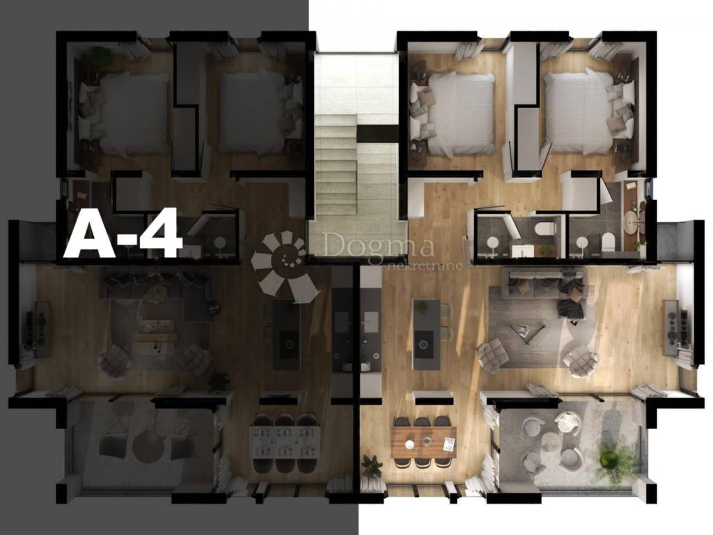 U sklopu objekta nalaze se parkirna mjesta, uređeno dvorište s mediteranskim zelenilom i zajednički bazen koji koriste dvije zgrade. Zgrada je izgrađena prema suvremenim standardima, a završetak radova planiran je do kraja godine. Kupaonice i kuhinja bit će potpuno opremljene.