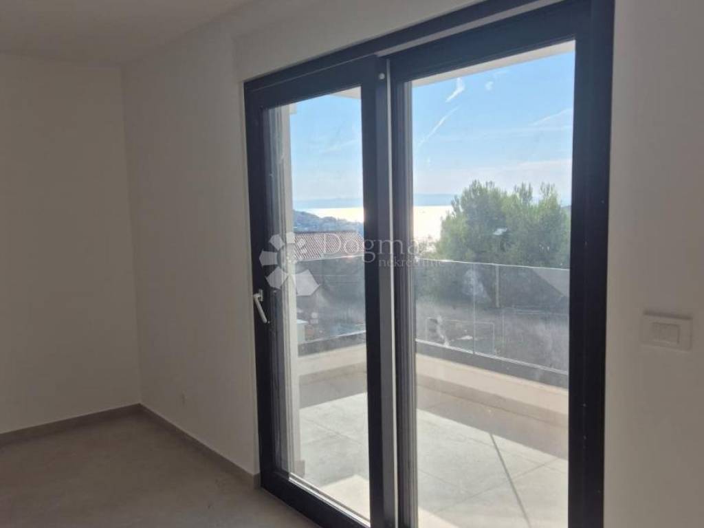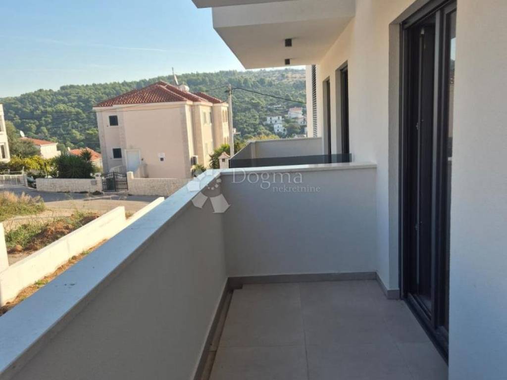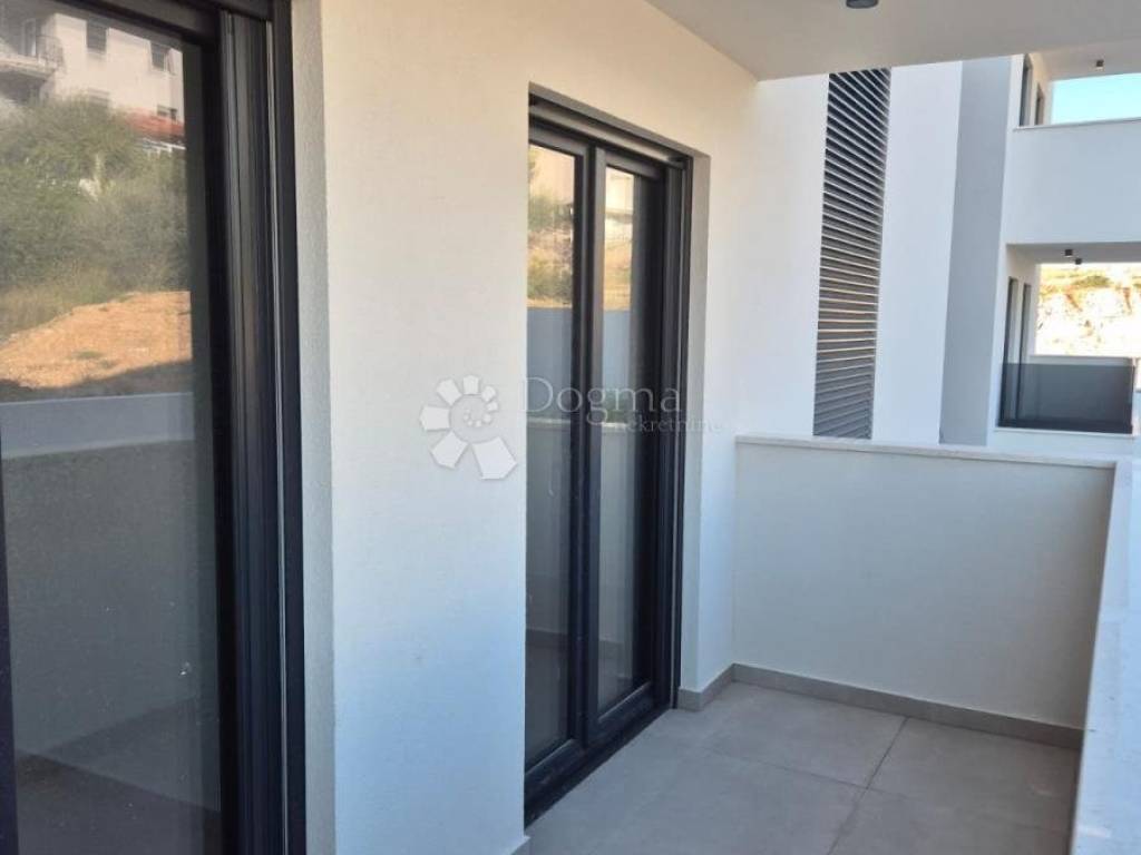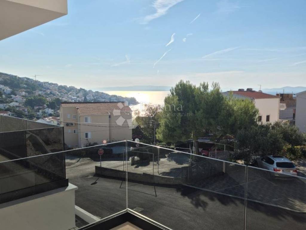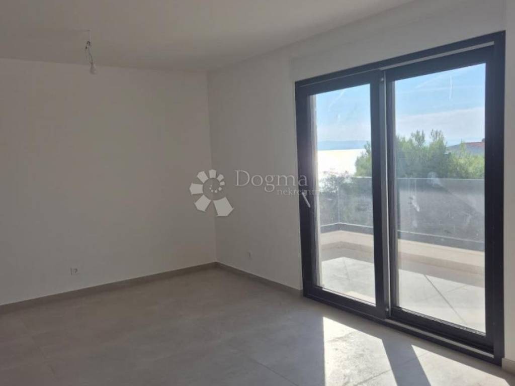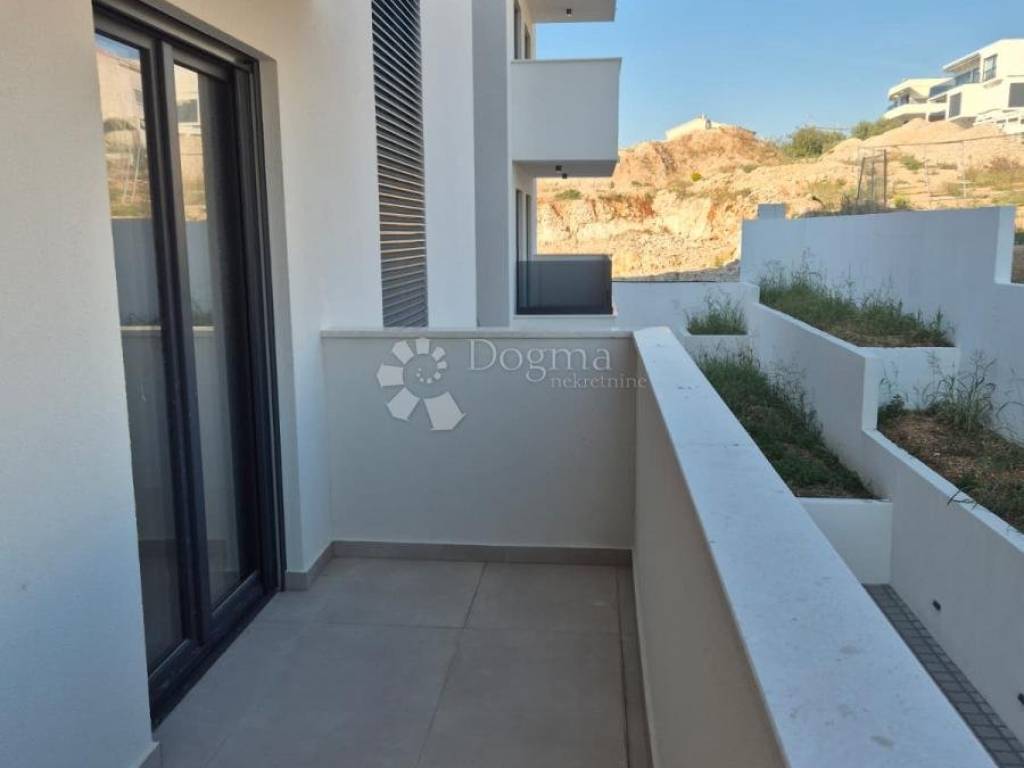 Na prodaju je moderan stan u visoko kvalitetnoj novogradnji u Okrugu Gornjem, udaljen svega manje od 150 metara od mora i plaže.