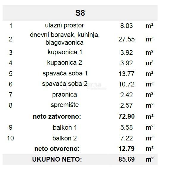 Ukupno neto: 85,69 m