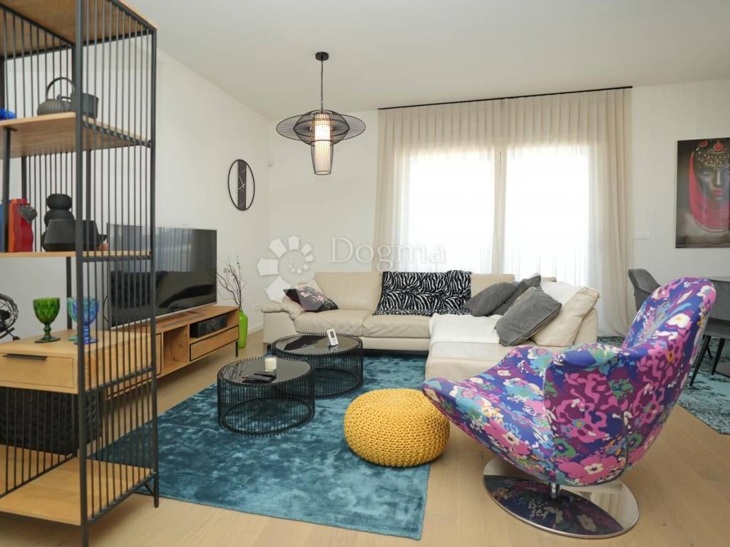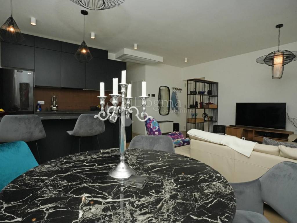 Dobrodošli u ovaj luksuzni stanu, smješten na prvom katu elegantne novogradnje! Ova nekretnina nudi spoj stilskog dizajna i vrhunskog namještaja, stvarajući prostor koji odiše suvremenom elegancijom i udobnošću.