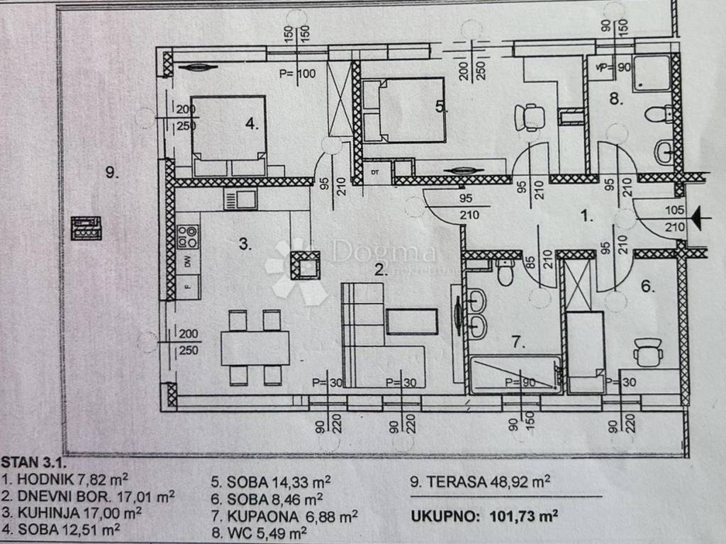 Rijetkost u ponudi! Ovaj impresivan stan, površine 101.73 , u atraktivnoj novogradnji renomiranih projektanata donosi suvremeni standard stanovanja uz najvišu razinu kvalitete. Zgrada je izvedena prema A+ energetskom certifikatu, opremljena modernim dizalom i oblikovana tako da spaja suvremenu estetiku i inherentnu vrijednost.