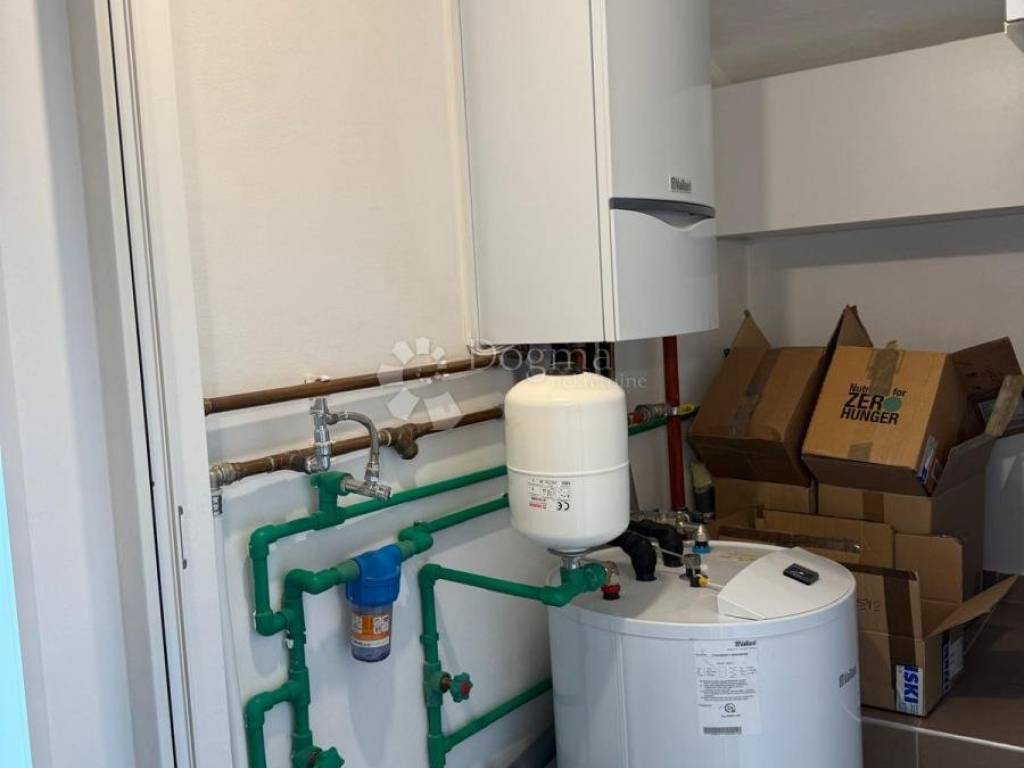 Stan odiše toplinom i svjetlošću, jer njegova jugozapadna orijentacija obasjava tri spavaće sobe tijekom cijelog dana, stvarajući ugodnu i mirnu atmosferu. Kupaonica s toaletom uređena je s posebnom pažnjom prema detaljima, a dodatni prostor nudi luksuz u svakodnevici: tu se nalazi praktičan walk-in ormar za garderobu i osobne stvari, kao i zasebna prostorija u kojoj je smješten bojler za centralno grijanje te pored nje još jedan toalet. Stan ima klimu i podno grijanje, a važno je istaknuti da i vanjska terasa također ima podno grijanje te protuprovalna vrata i visokokvalitetnu PVC stolariju. Zgrada ima video nadzor.