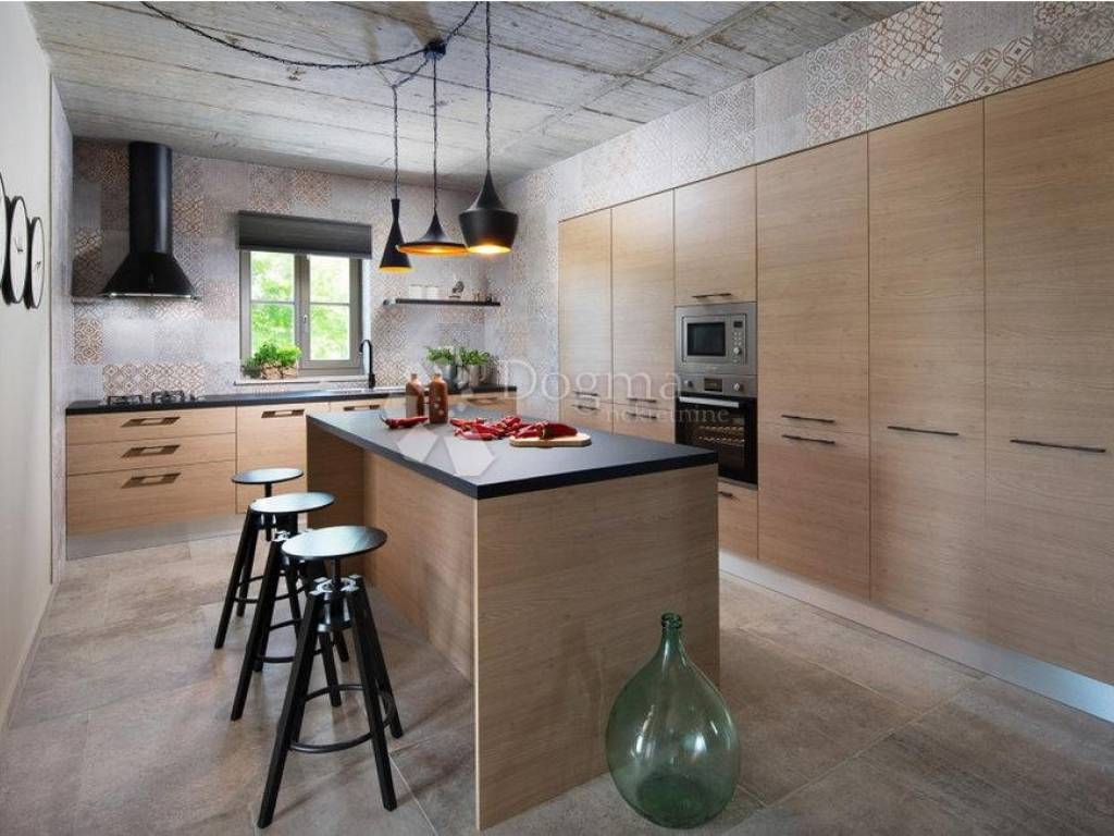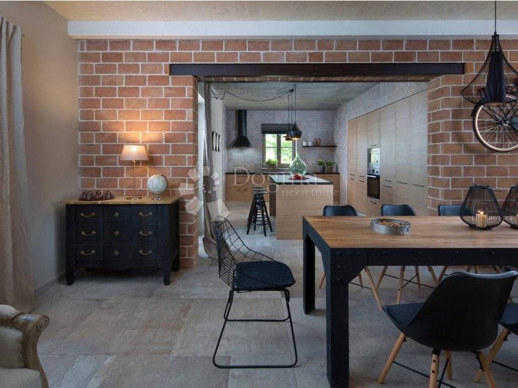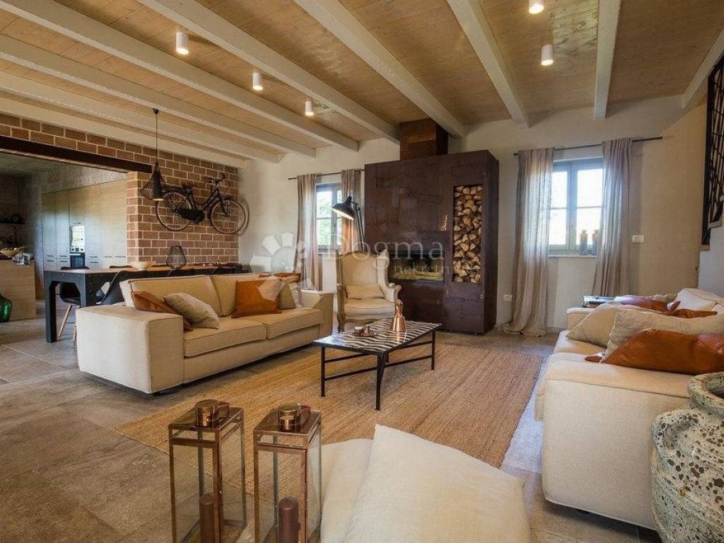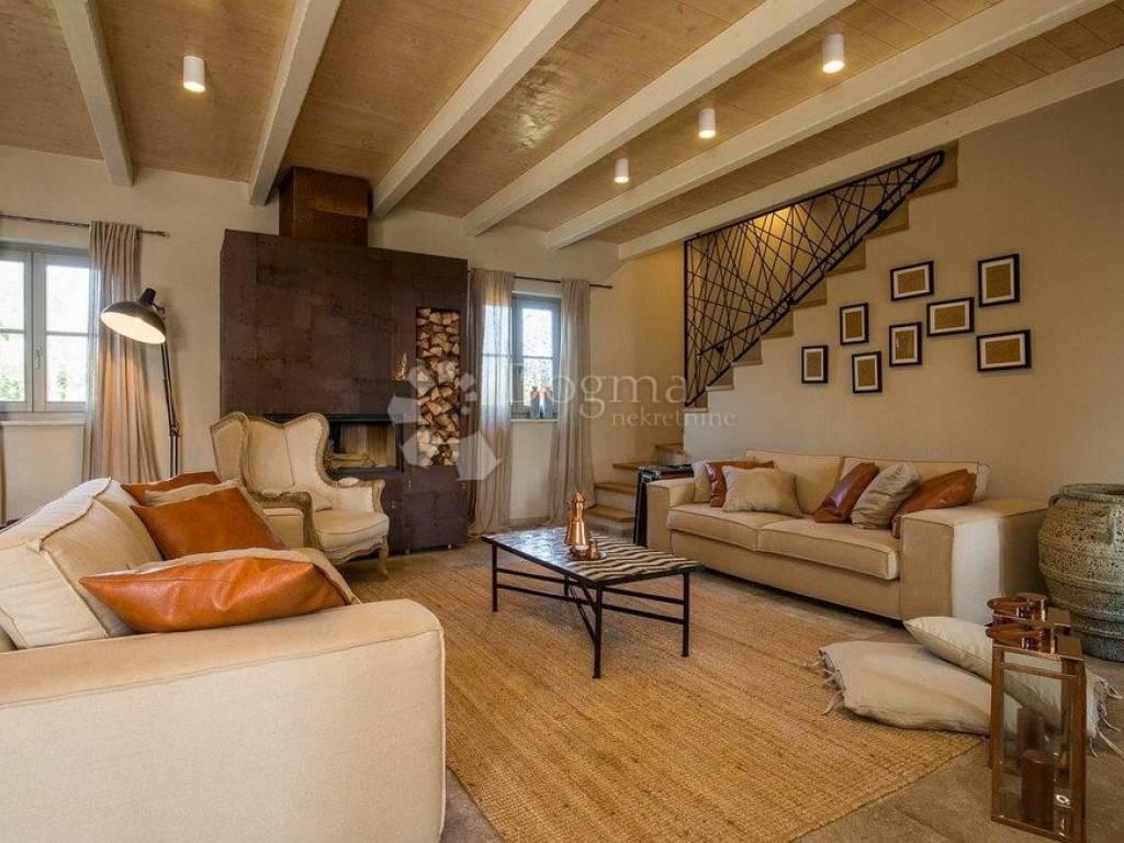 Na prodaju je prekrasna vila smještena u mirnom mjestu Divšići, u blizini Pule, idealna za opuštajući odmor u srcu Istre. Ova elegantna nekretnina pažljivo je dizajnirana u tradicionalnom istarskom stilu, gdje se skladno isprepliću kamen i drvo, naglašavajući njezinu arhitektonsku vrijednost i autentičan šarm.