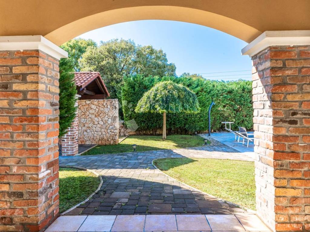 Prostire se na prostranoj parceli s uređenom okućnicom i nudi idealan balans između elegancije i funkcionalnosti. Unutrašnjost je pažljivo osmišljena kako bi pružila maksimalnu udobnost: