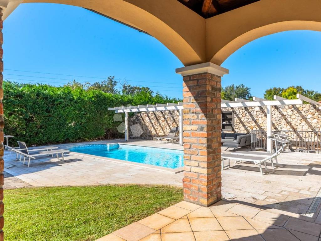 Na mirnom i zelenilom okruženom mjestu smještena je ova impresivna samostojeća villa, koja spaja moderan dizajn, vrhunsku udobnost i potpunu privatnost.