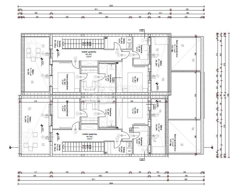 Dvije lođe (s prednje i stražnje strane kuće) 11,9 m i 17,2 m