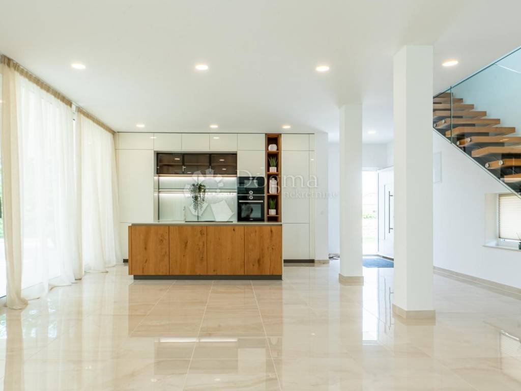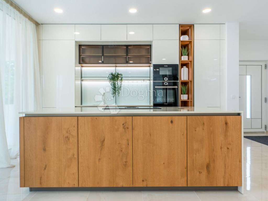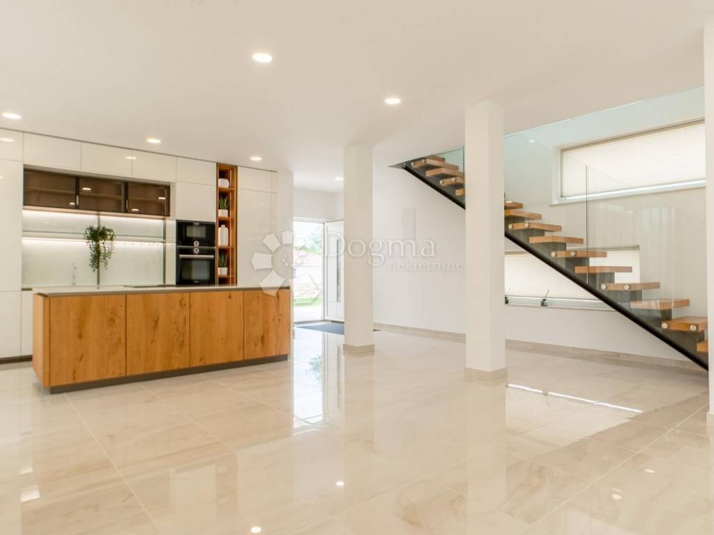Funkcionalnost i elegancija pravi su sinonimi za ovu nekretninu. Otvoreni prostor u prizemlju, s prekrasnim dekorima i detaljima drvenih dizajnerskih stepenicama sa staklenim rukohvatom vode Vas do 1. kata kuće, gdje su smještene 4 spavaće sobe. Svaka soba ima vlastitu kupaonicu te izlaz na terasu.
