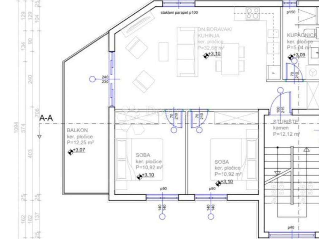 Otvorenog dnevnog boravka s kuhinjom i blagovaonicom (32,68 m)