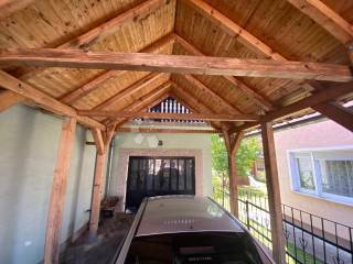 U dvorištu iza kuće šarmantna sjenica s pecarom od 23 m savršena za druženja i opuštanje u toplijim mjesecima.