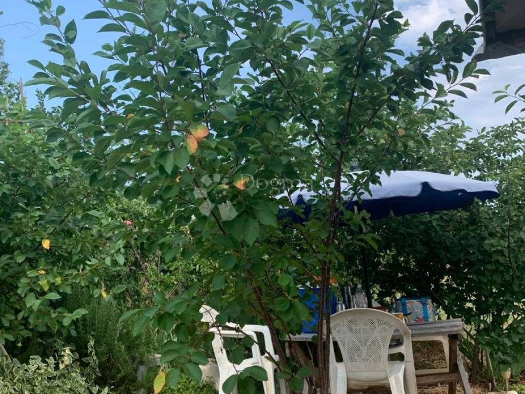 Manji dio parcele je ograđen i uređen na njemu se nalazi kamperica, zasađene su smokve, višnje, ljekovito i ukrasno bilje, što prostoru daje toplinu i osobni pečat.