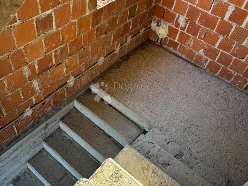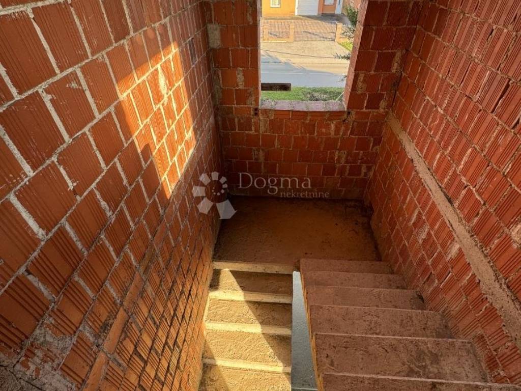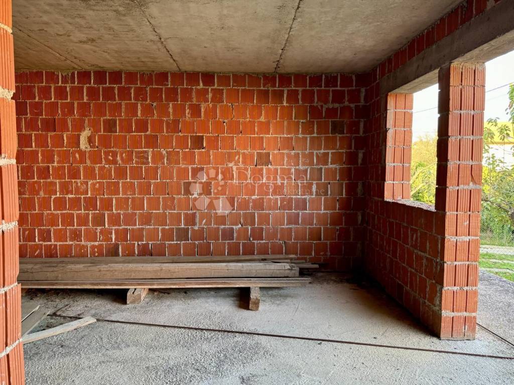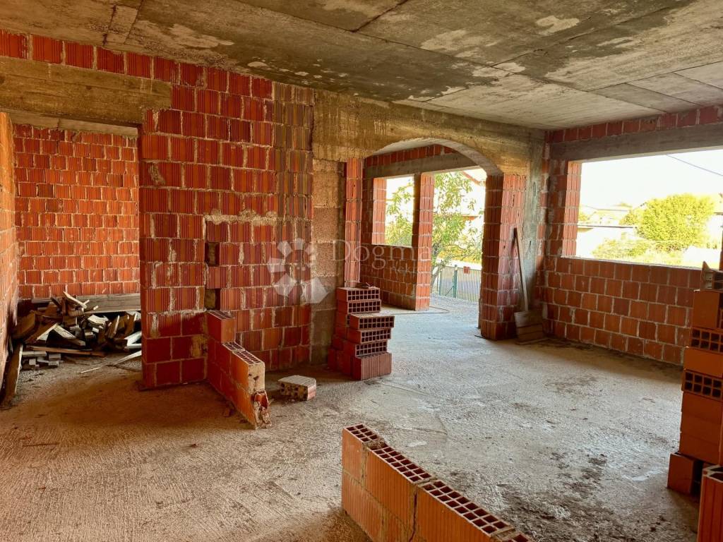 Kuća je djelomično nedovršena, ali useljiva, s velikim potencijalom. Raspoređena je na tri etaže: