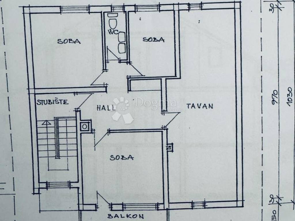 Potkrovlje: 3 spavaće sobe, WC, tavan