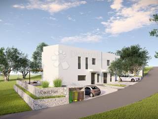 Na prodaju je ekskluzivna dvojna novogradnja smještena u blizini svih potrebnih sadržaja, a u isto vrijeme u mirnom, zelenom okruženju bogatom prirodnim ljepotama.