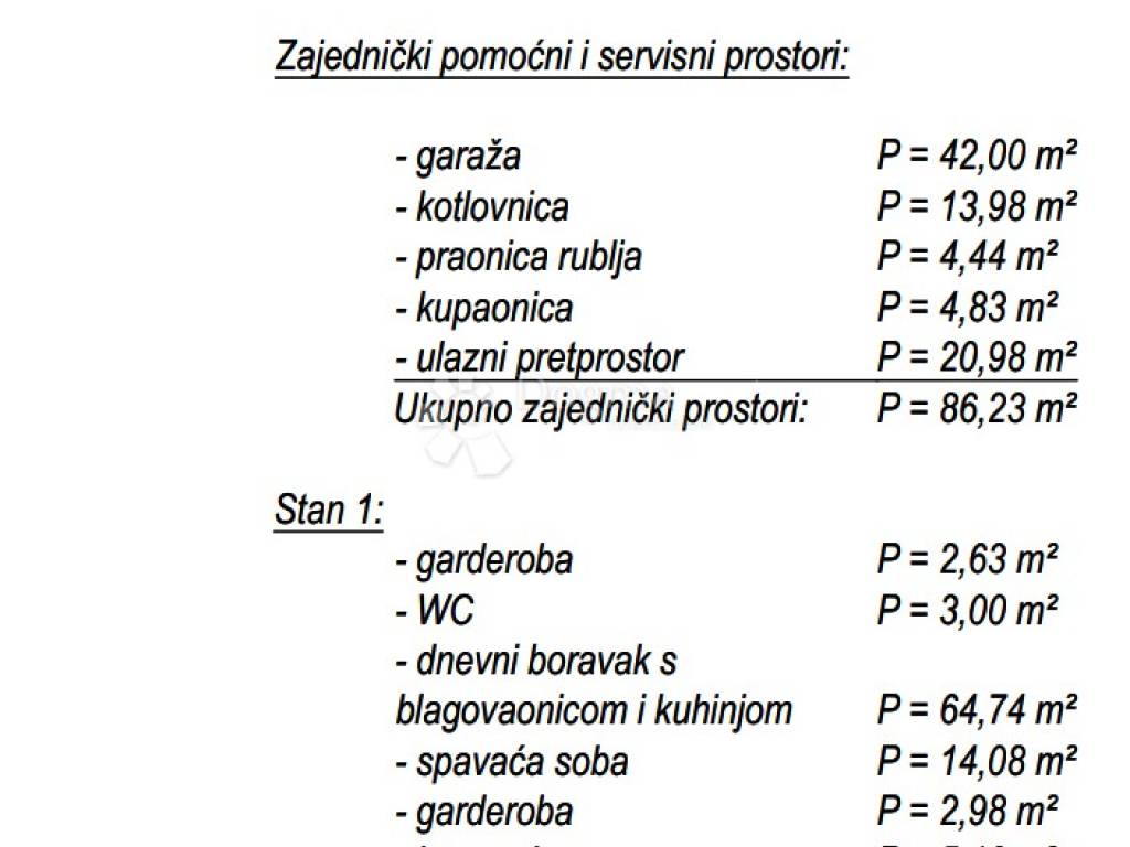 Ova villa se sastoji od prizemlja te dva kata, s garažom i vanjskim bazenom. Villa ima ukupno 6 spavaćih soba, 6 kupaonica, dva WC-a, garderobe, fitness prostoriju, ostave, prostoriju za zabavu, krovnu terasu, garažu za dva automobila, tri dnevna boravka, kuhinje i blagovaonice, bazen i garaže.
