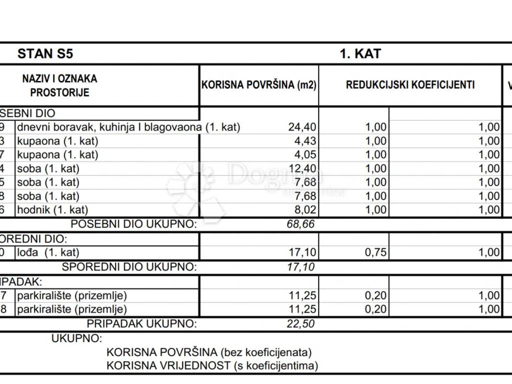 Prodaje se trosobni stan S5 na 1 katu novogradnje korisne površine 85.99 m2.