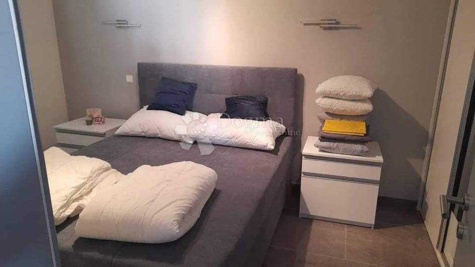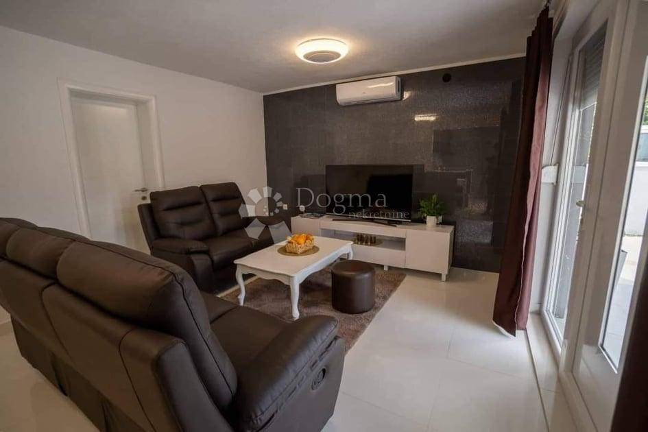 U prizemlju se nalazi dvosobni stan s dnevnim boravkom, kuhinjom, dvije spavaće sobe, kupaonicom i natkrivenom terasom.