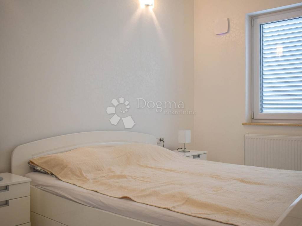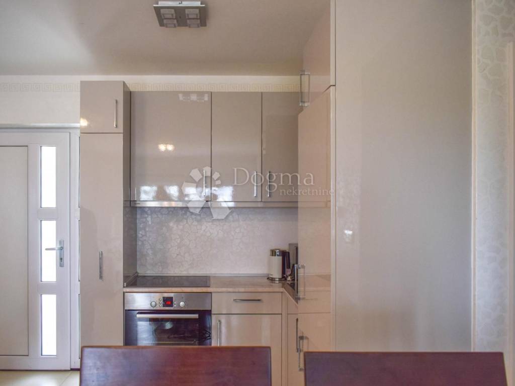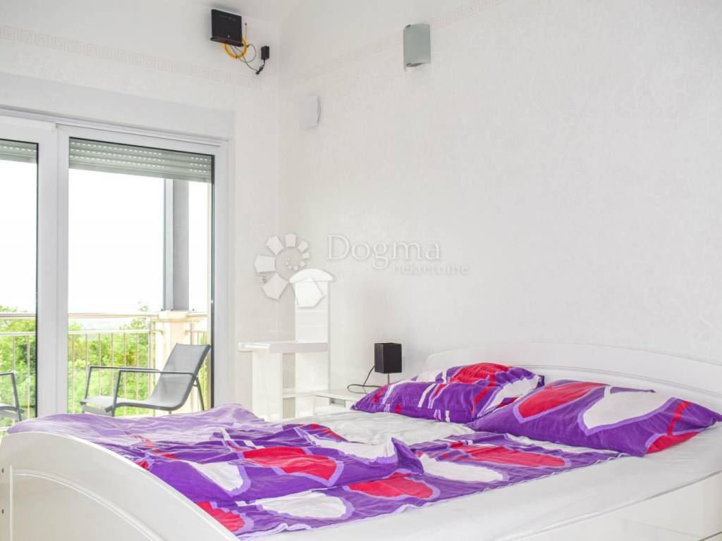 Tri spavaće sobe, svaka s vlastitom kupaonicom, dodatni gostinjski WC, moderno opremljenu kuhinju s blagovaonicom i veliki dnevni boravak s izlazom na terasu s koje se pruža predivan panoramski pogled na more i okolnu prirodu.