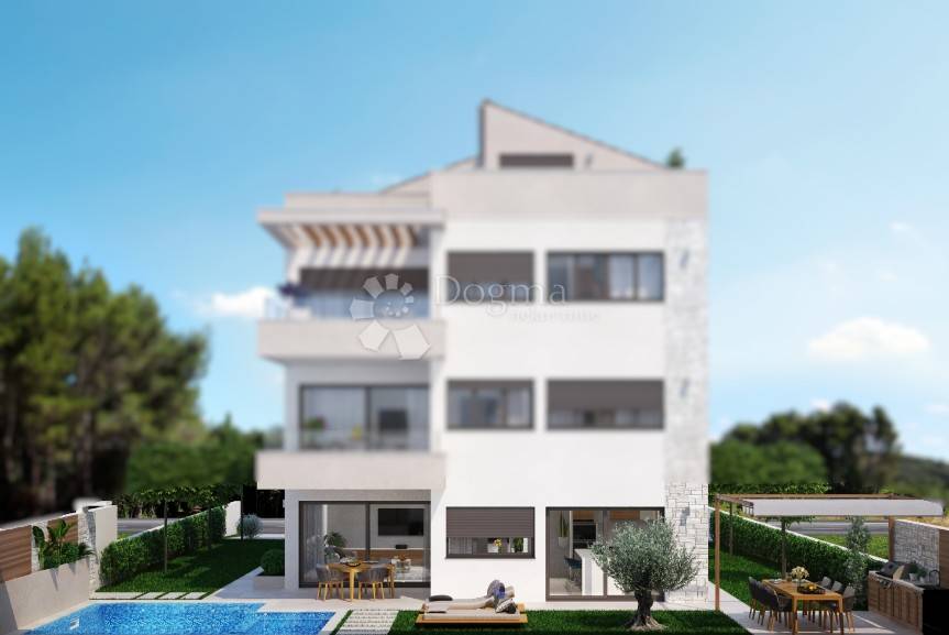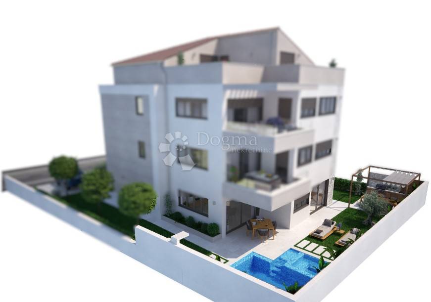 Prodaje se luksuzni stan s vrtom i bazenom u modernoj novogradnji, smješten svega 500 metara od mora u Rovinju.