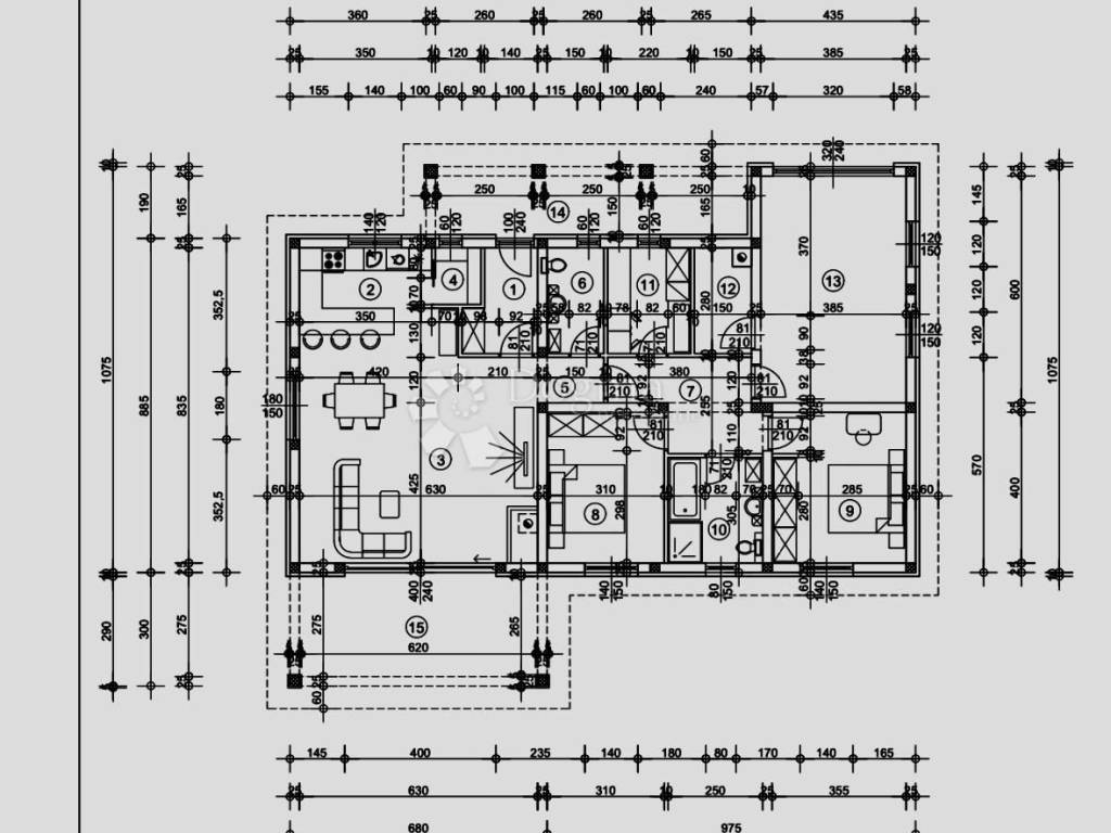 Tlocrtna površina prizemnice iznosi 150 m, a zamišljena je kao funkcionalan i prozračan stan površine 110 m.