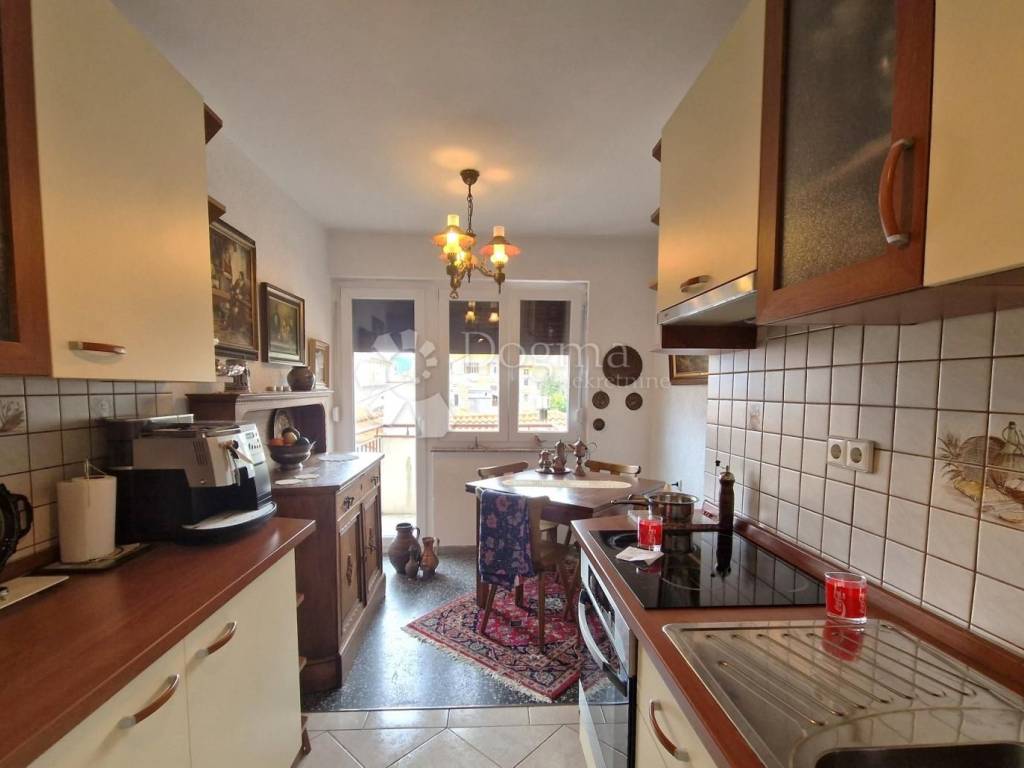 Kvadratura stana je 57.78 m2 a sastoji se od: jedne spavaće sobe, kuhinj s blagovaonom, kupaonice, ostave, garderobe, hodnika, dnevnog boravka i dva balkona. Na veći balkon izlazi se iz dnevnog boravka. Iz stana se pruža lijepi pogled na grad, Učku, Opatiju i more. Stan je uredan, opremljen svim potrebnim aparatima i stilskim namještajem.