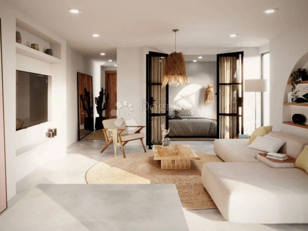 Stan se sastoji od jedne prostrane spavaće sobe, dizajnirane za maksimalnu udobnost, te jedne luksuzne kupaonice, opremljene vrhunskim sanitarijama. Open-space dnevni boravak s kuhinjom osmišljen je kao svijetao, prozračan prostor, savršen za ugodne trenutke i druženja. Dodatnu praktičnost pruža privatno parkirno mjesto.