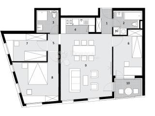 Grijanje je putem dizalica topline, koje osiguravaju pripremu tople vode i grijanje. Svi prostori u stanu imaju podno grijanje, a hlađenje je omogućeno klima uređajima.