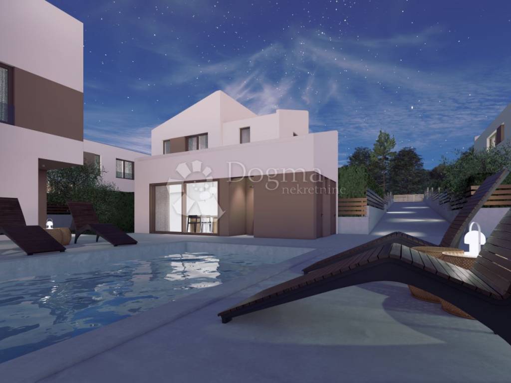 Osim glavne kuće, na parceli se nalazi i pomoćni objekt, dok bazen pruža dodatni luksuz i mjesto za opuštanje.