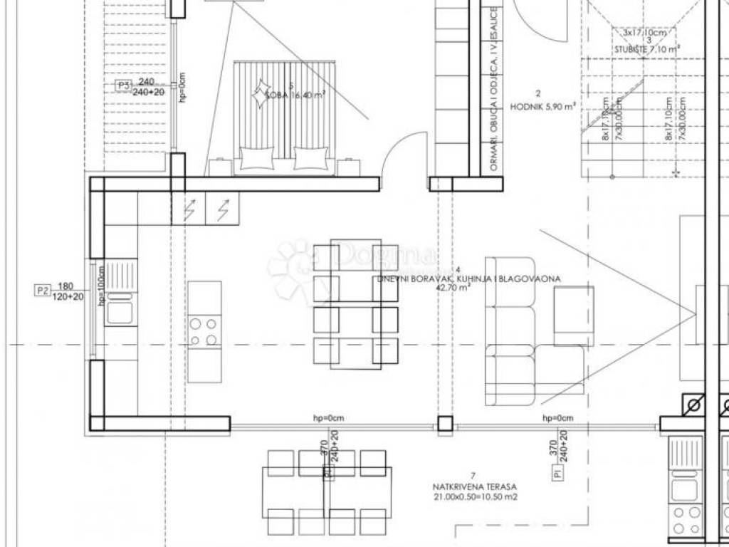 - Prostrani open-space dnevni boravak s velikim staklenim stijenkama koje pružaju obilje prirodnog svjetla