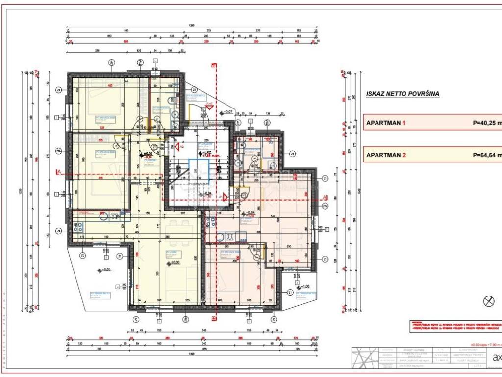 Prodaje se dvosoban apartman A2 neto površine 64.64m2 u prizemlju zgrade koji je u potpunosti završen i odmah useljiv. Apartman neto površine 64.64 m2 sastoji se od: predsoblja, kuhinje, dnevnog boravka i blagovaonice, 2 spavaće sobe, kupaonice, terase i prostranog vrta. Apartmanu pripada jedno parkirno mjesto. Ukupna površina apartmana sa izračunatim koeficijentima za terasu, 1 parkirno mjesto i vrt je 82.27 m2.