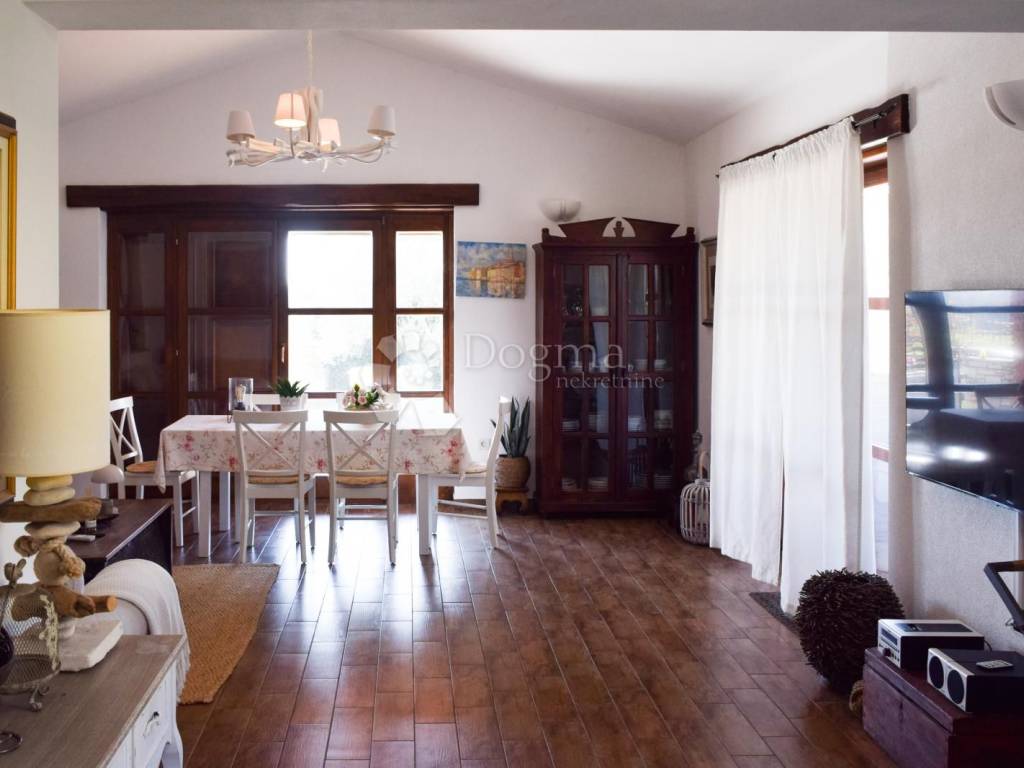 Vila se proteže na dvije etaže. U prizemlju se nalazi prostrani dnevni boravak s blagovaonicom i kuhinjom otvorenog tipa, koja pruža izlaz na veliku natkrivenu terasu s ljetnom kuhinjom, vanjskim kaminom te sunčalištem i lounge zonama. Ovdje je smješten i jedan spavaći prostor, te elegantna kupaonica. Prvi kat, do kojeg vodi unutarnje stepenište, nudi dvije spavaće sobe i modernu kupaonicu.