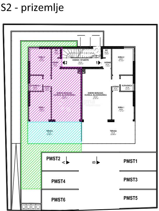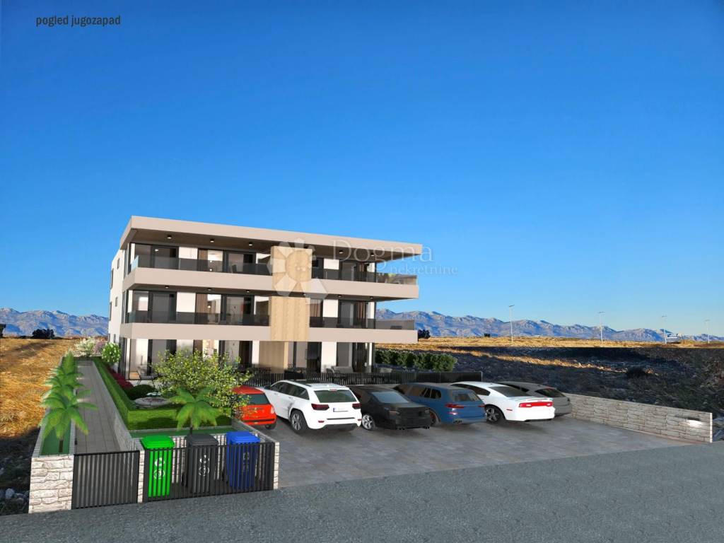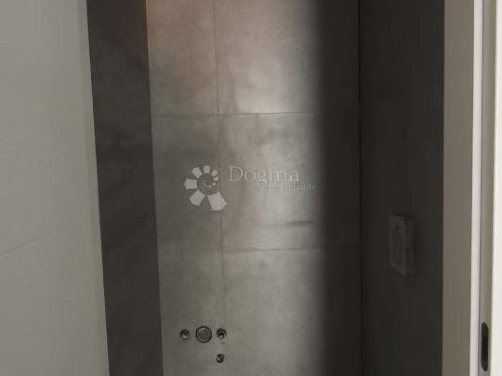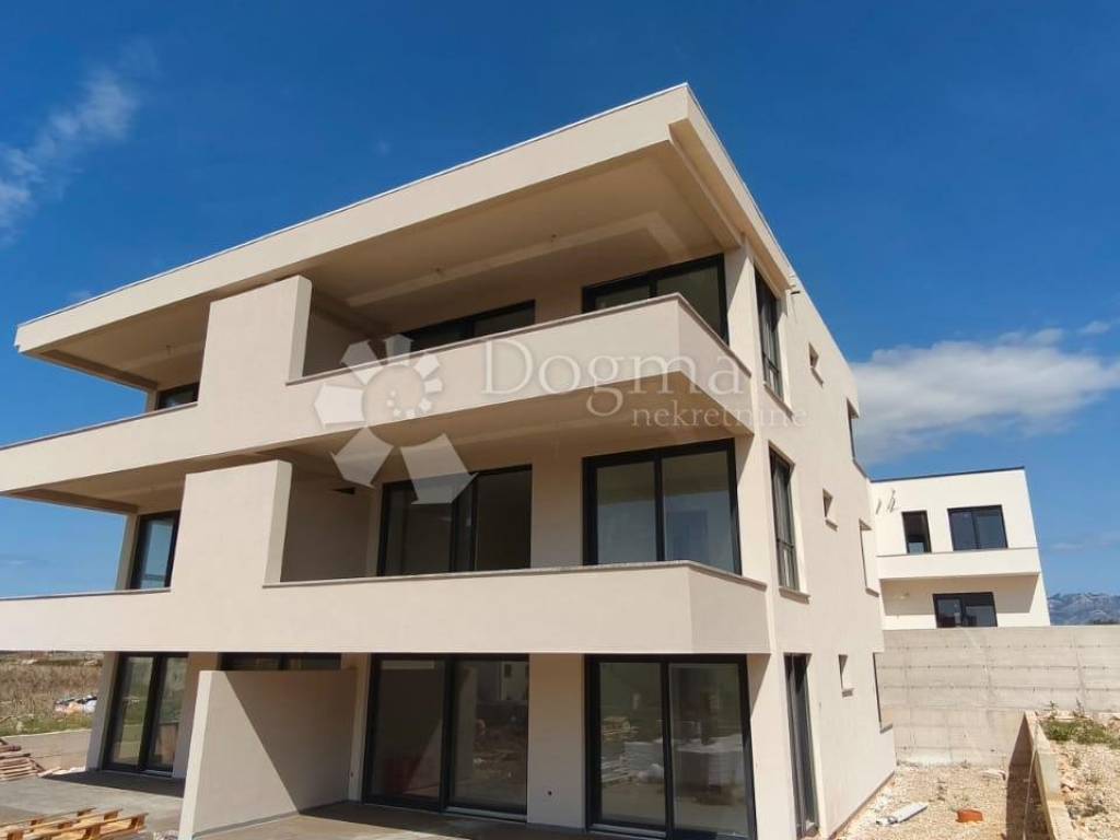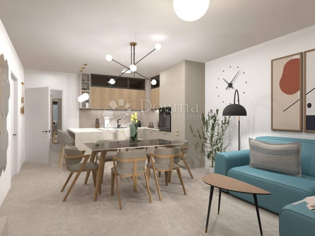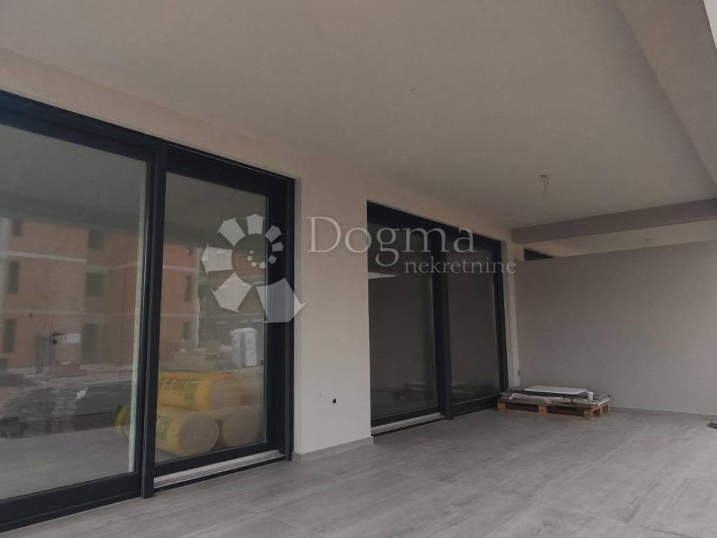 Na prodaju je moderno dizajniran prizemni stan u zgradi s ukupno 6 stanova, vrhunske kvalitete gradnje. Sastoji se od hodnika, WC-a, dvije spavaće sobe (jedna s izlazom na veliku terasu), kupaonice i prostranog dnevnog boravka s kuhinjom i blagovaonicom, koji također ima izlaz na terasu od 22 m kroz kliznu staklenu stijenu. Stanu pripada i 40 m okućnice te jedno parkirno mjesto.