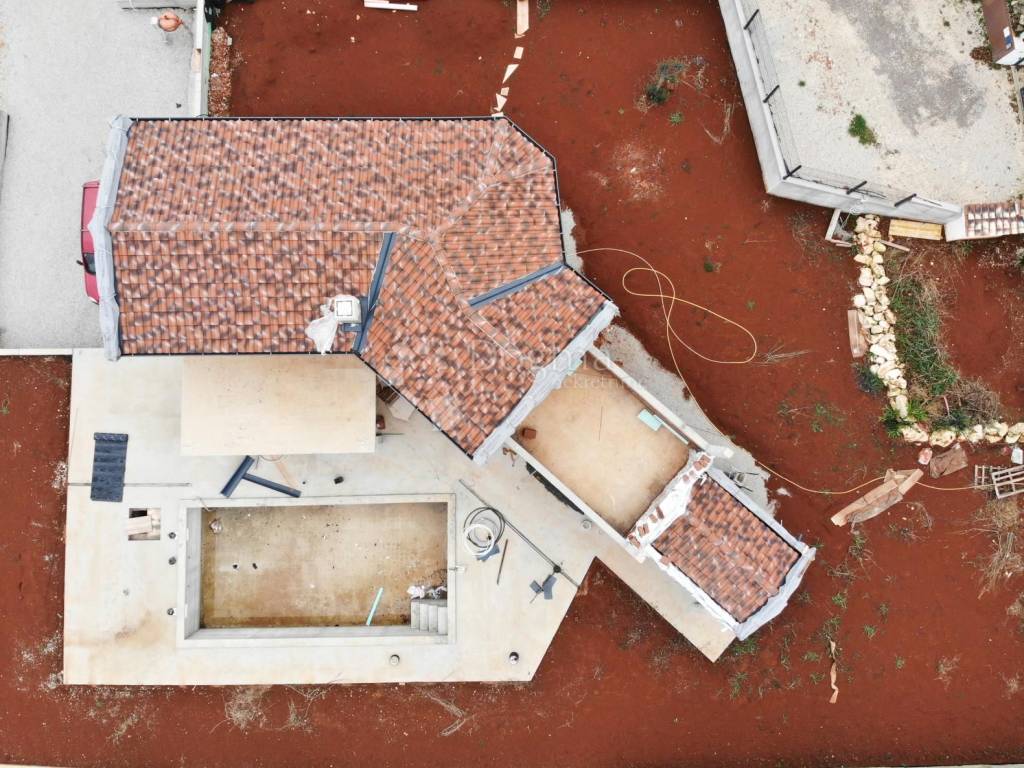 U vanjskom prostoru kuće nalazi se roštilj, idealan za ljetne večeri s obitelji i prijateljima, te bazen dimenzija 9 x 4 metra, koji nudi uživanje u osvježavajućem kupanju. Kuća je pripremljena za ugradnju solarnih panela za grijanje vode, čime se osigurava energetska učinkovitost i ušteda na dugoročnom planu.